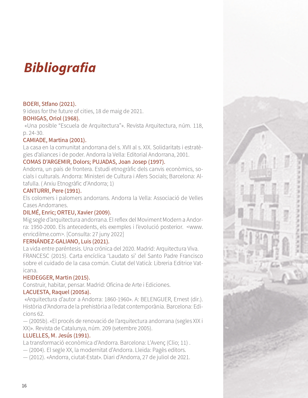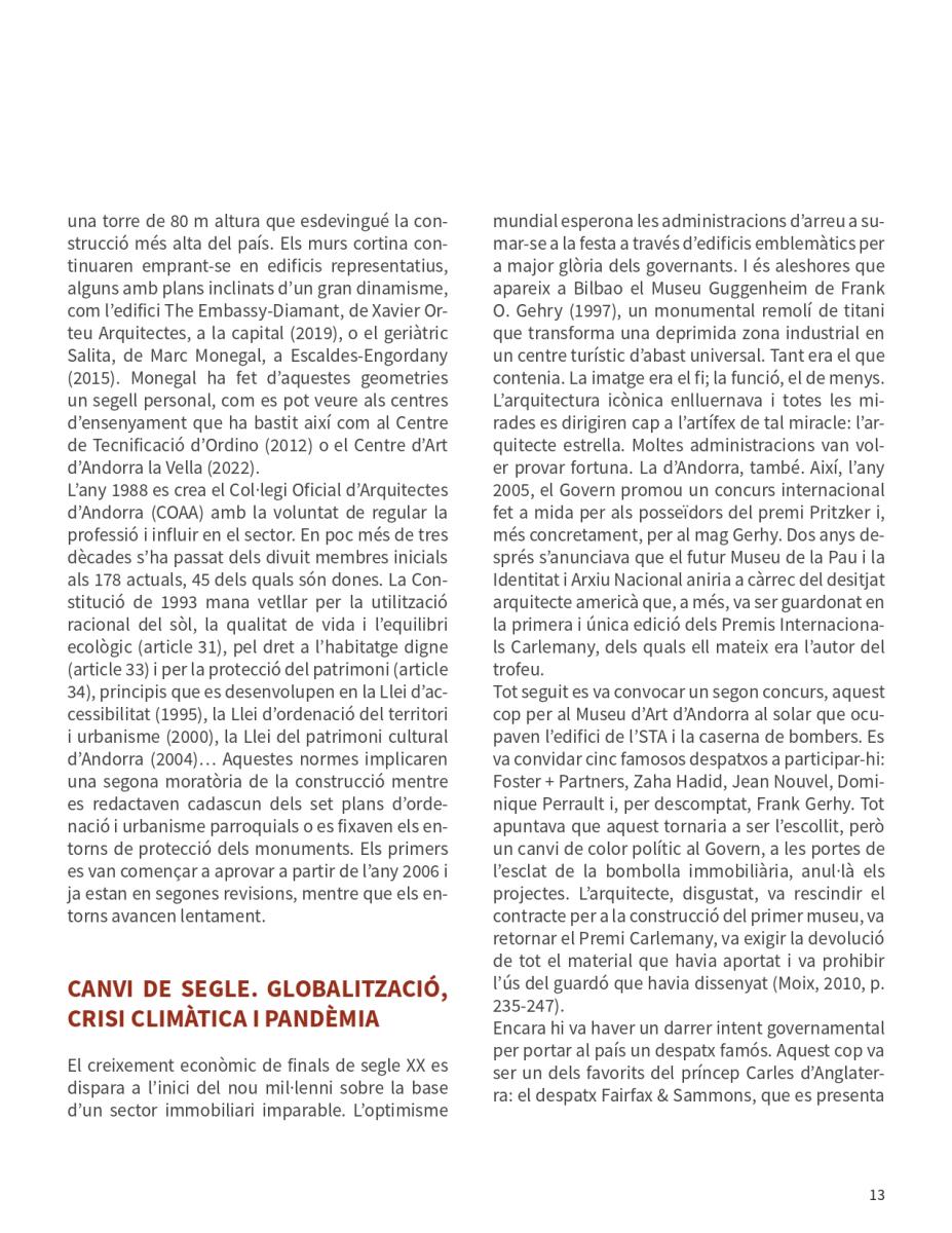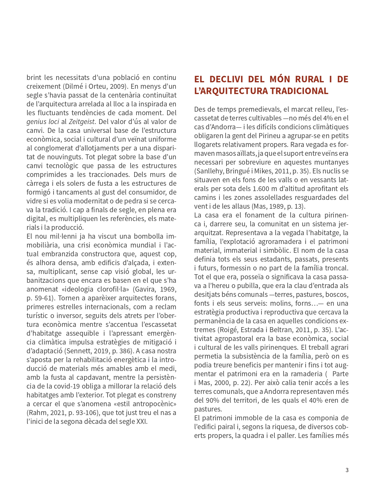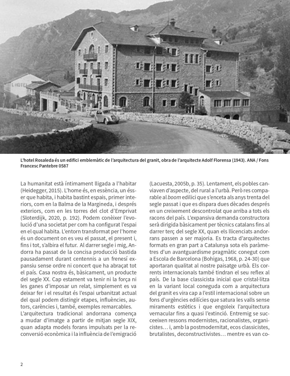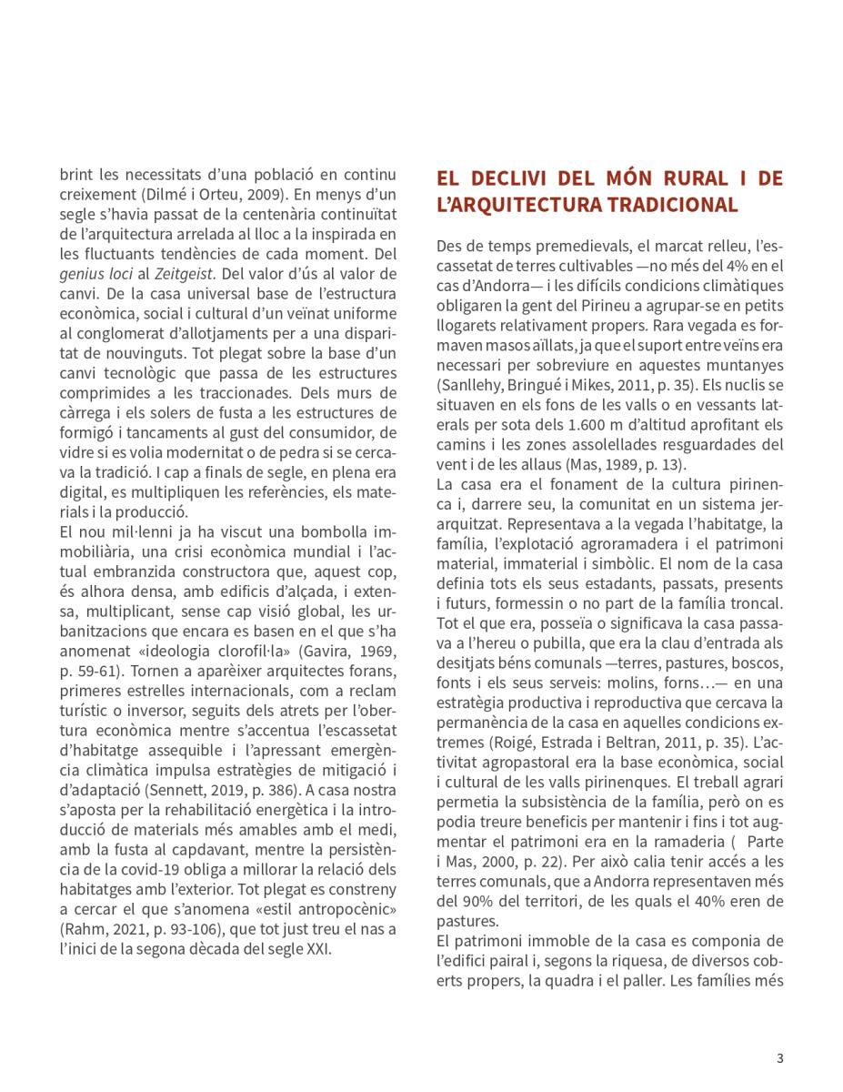 d’una societat per com ha configurat l’espai en el qual habita. L’entorn transformat per l’home és un document on es veu el passat, el present i, fins i tot, s’albira el futur. Al darrer segle i mig, Andorra ha passat de la concisa producció bastida pausadament durant centennis a un frenesí expansiu sense ordre ni concert que ha abraçat tot el país. Casa nostra és, bàsicament, un producte del segle XX.