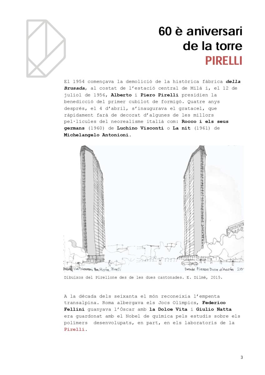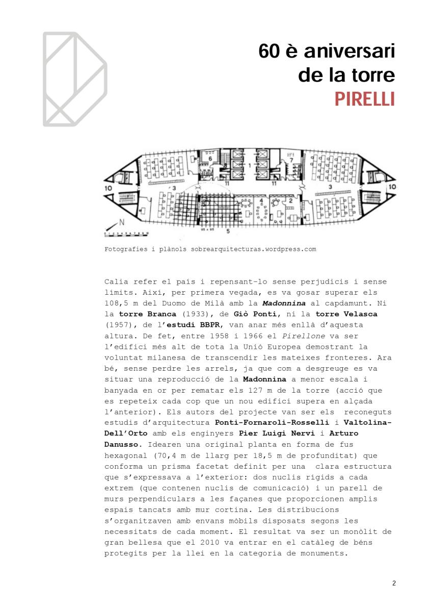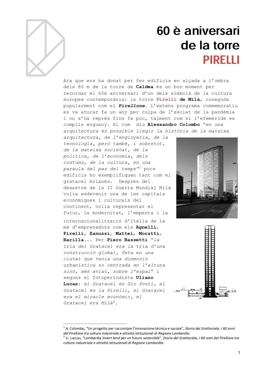 Ara que ens ha donat per fer edificis en alçada, a l’ombra dels 80 m de la torre de Caldea, és un bon moment per recordar el 60è aniversari d’un dels símbols de la cultura europea contemporània: la torre Pirelli de Milà.