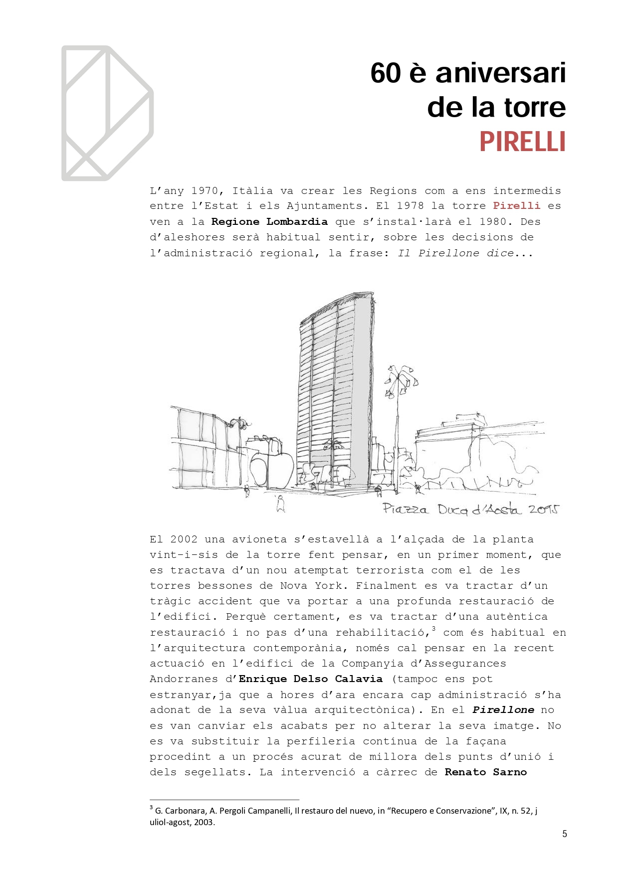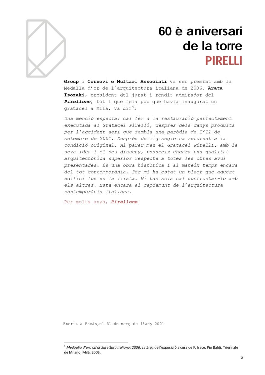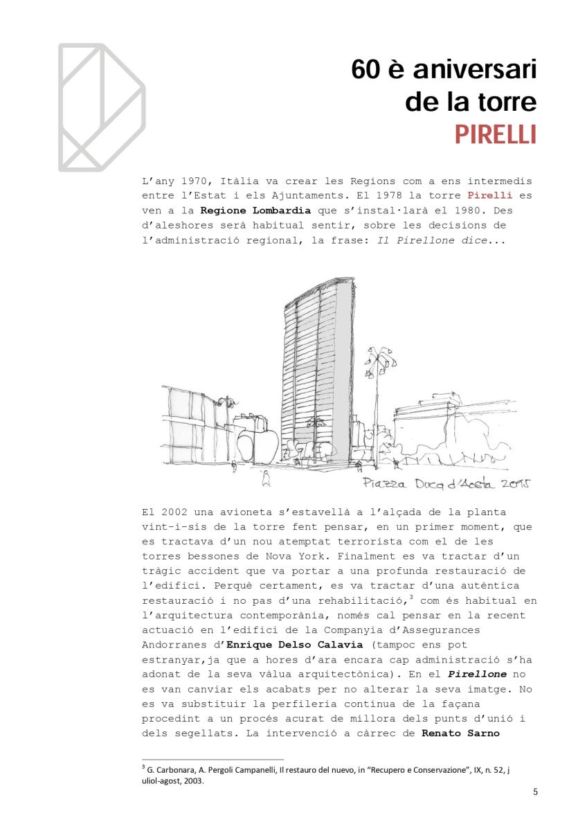 Ara que ens ha donat per fer edificis en alçada, a l’ombra dels 80 m de la torre de Caldea, és un bon moment per recordar el 60è aniversari d’un dels símbols de la cultura europea contemporània: la torre Pirelli de Milà.