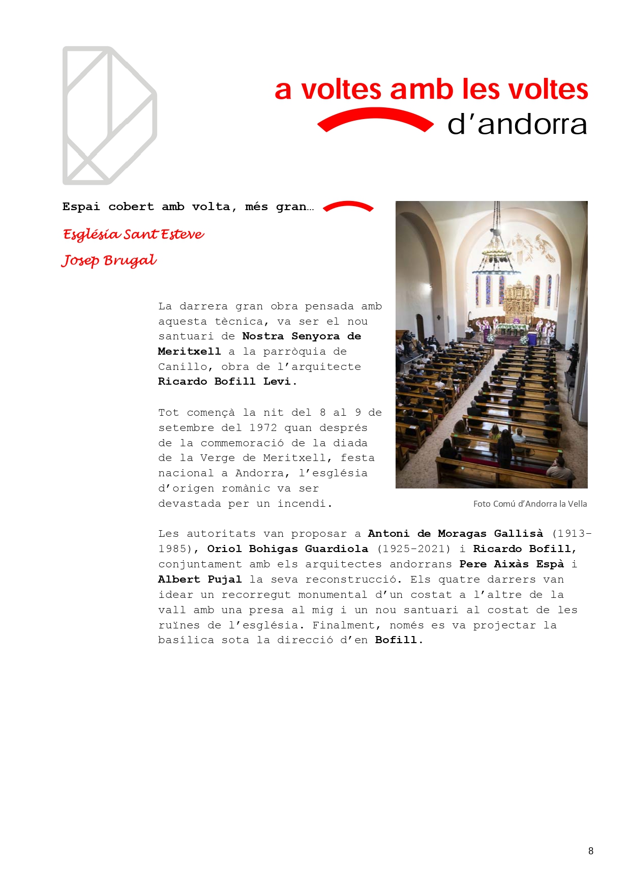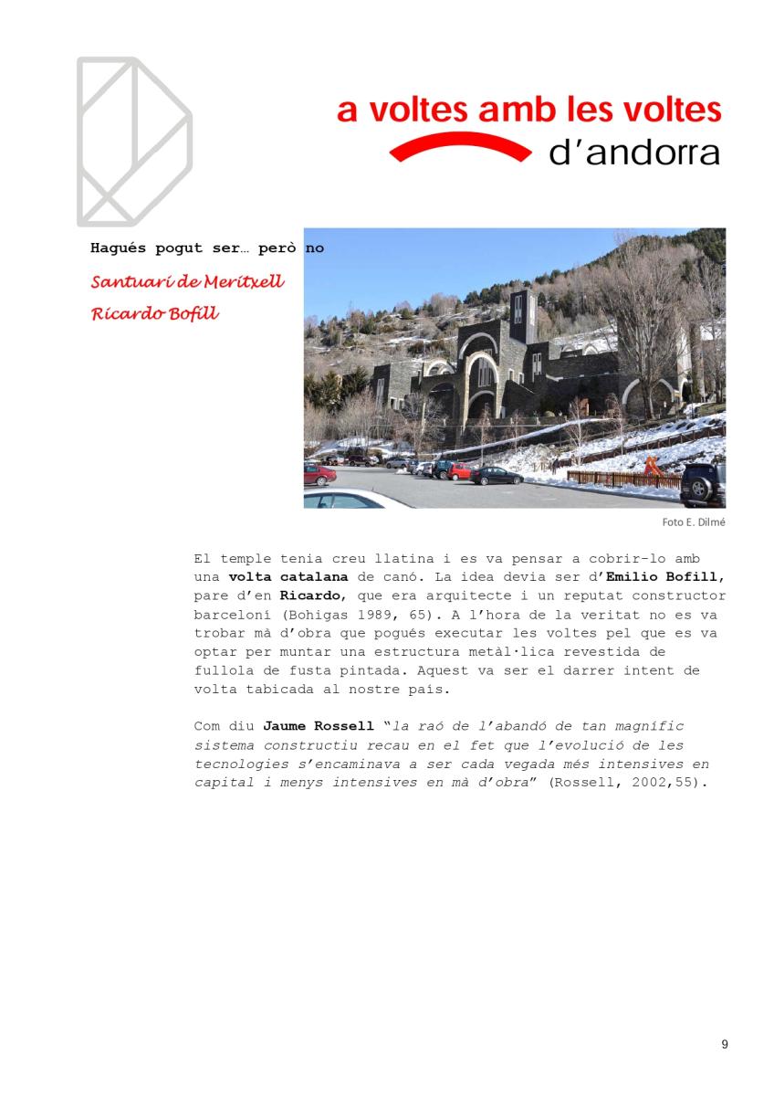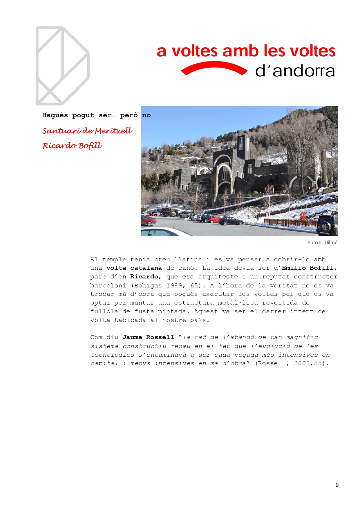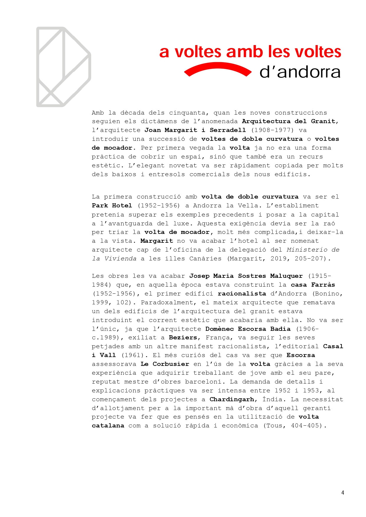 Mentre s’editen les actes del II Simposio Internacional de Bóvedas tabicadas, celebrat a València del 21 al 24 de novembre del 2018, publiquem la nostra ponència en català on fem un repàs de l’efímera història d’aquest sistema constructiu a Andorra i com, dècades més tard, s’ha reivindicat amb nous exemples.