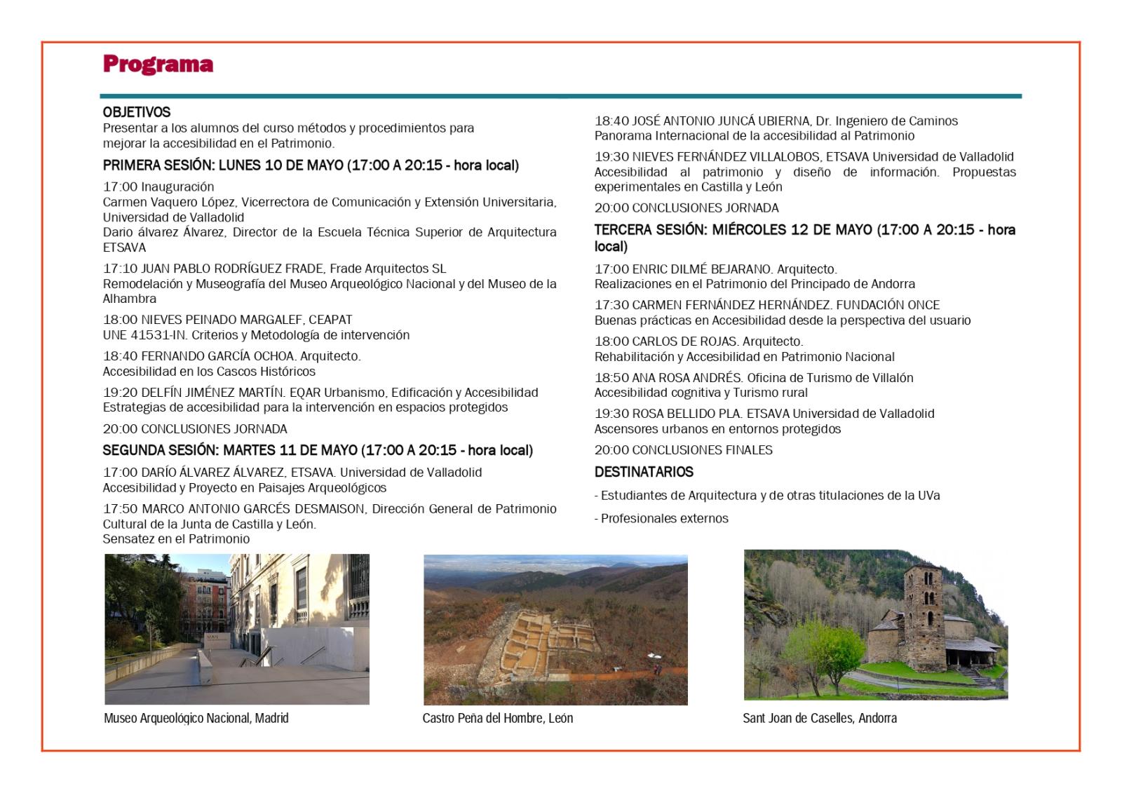 Conferència duta a terme el 12 de maig del 2021 en el curs V CURSO ACCESIBILIDAD Y PATRIMONIO, convidat per la ETS ARQUITECTURA de la UNIVERSIDAD DE VALLADOLID.