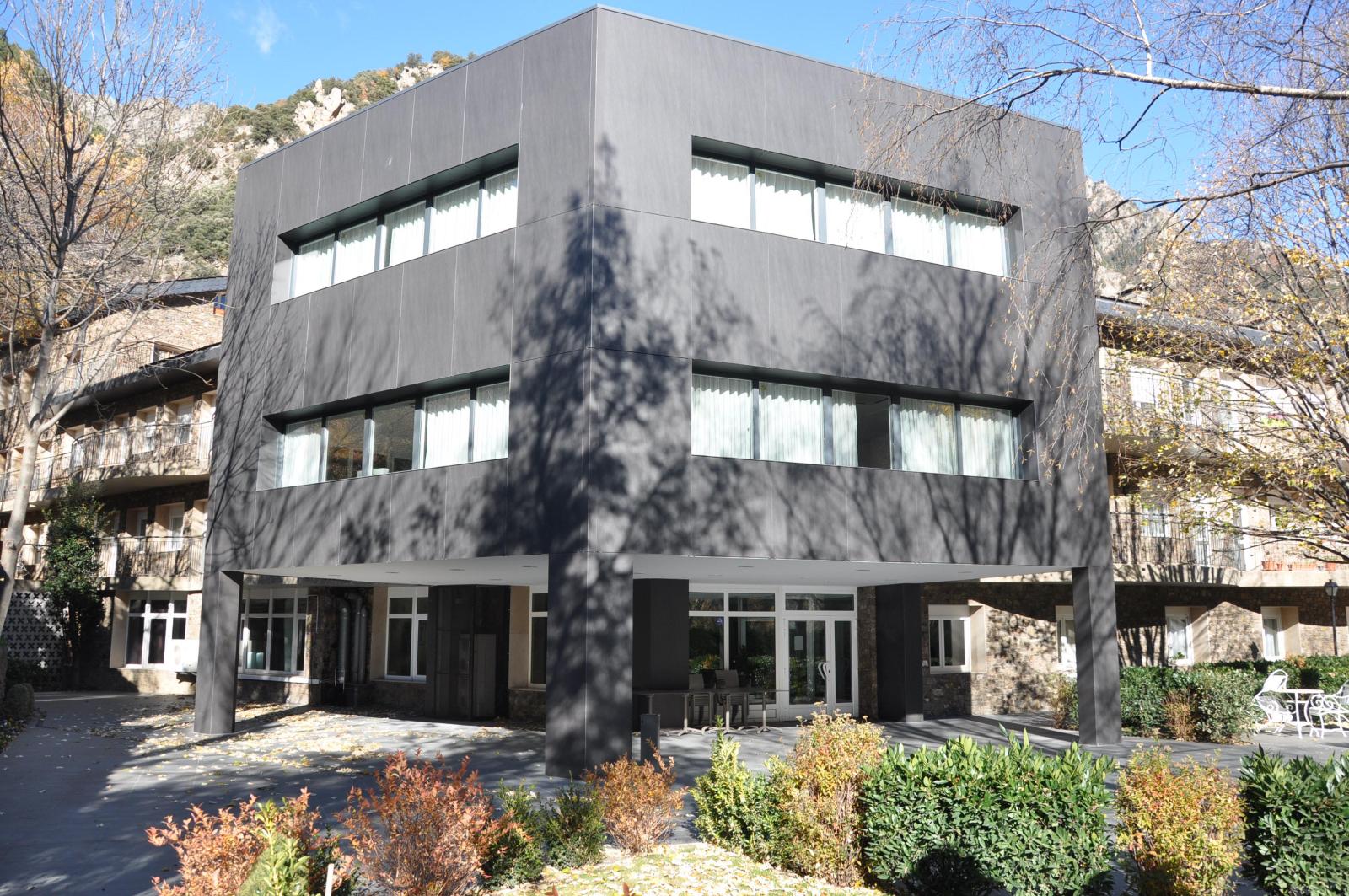 La clínica està formada bàsicament per un volum allargat en forma de “v” molt oberta. Just en l’angle interior que formen les dues ales se situen en cada planta una sala d’estar que ha quedat força justa per les activitats dels residents.