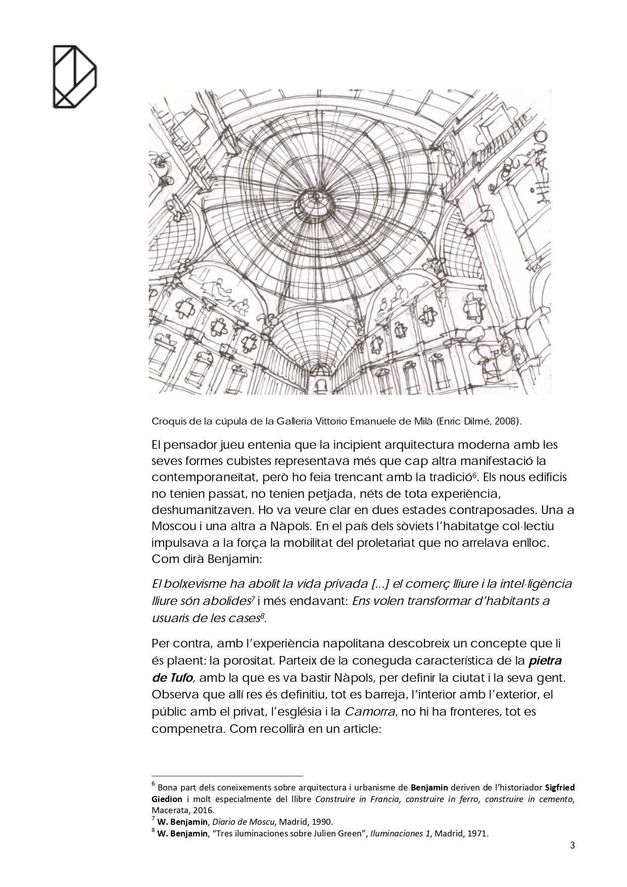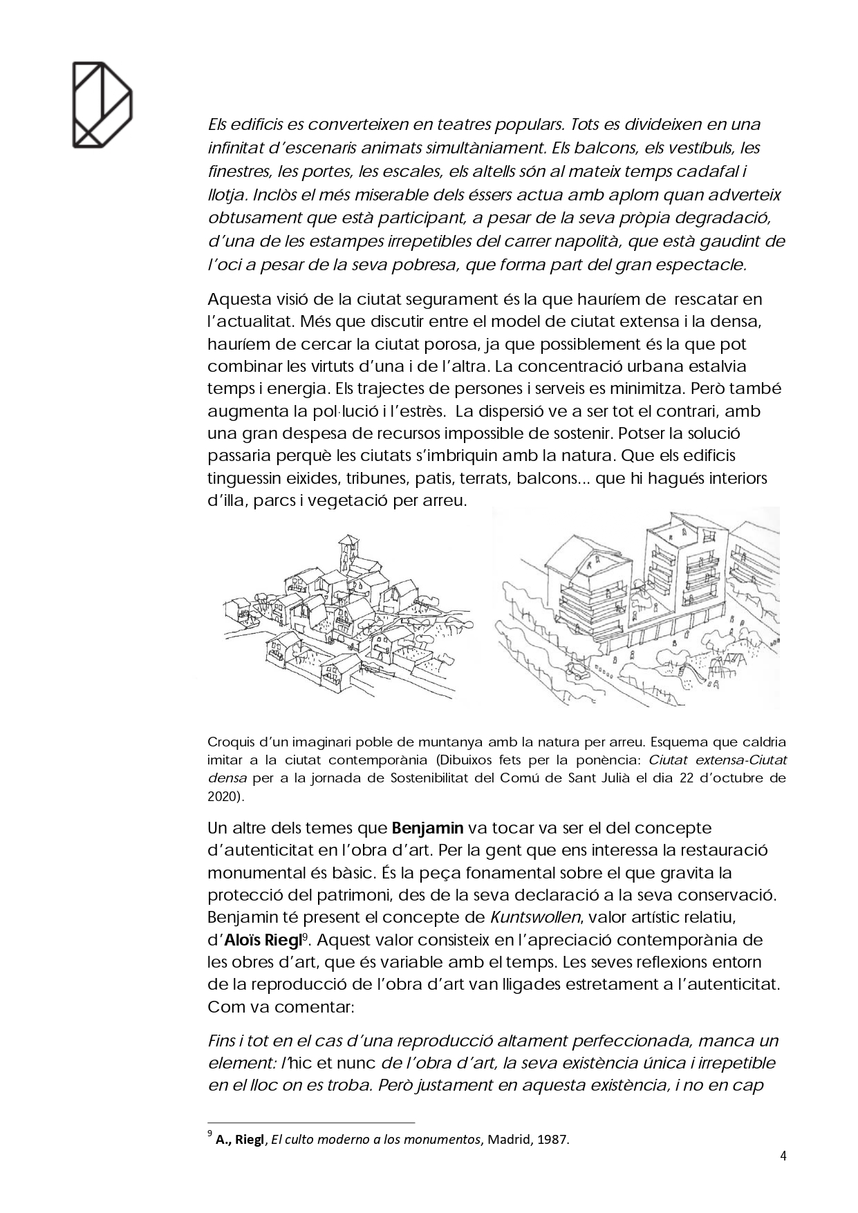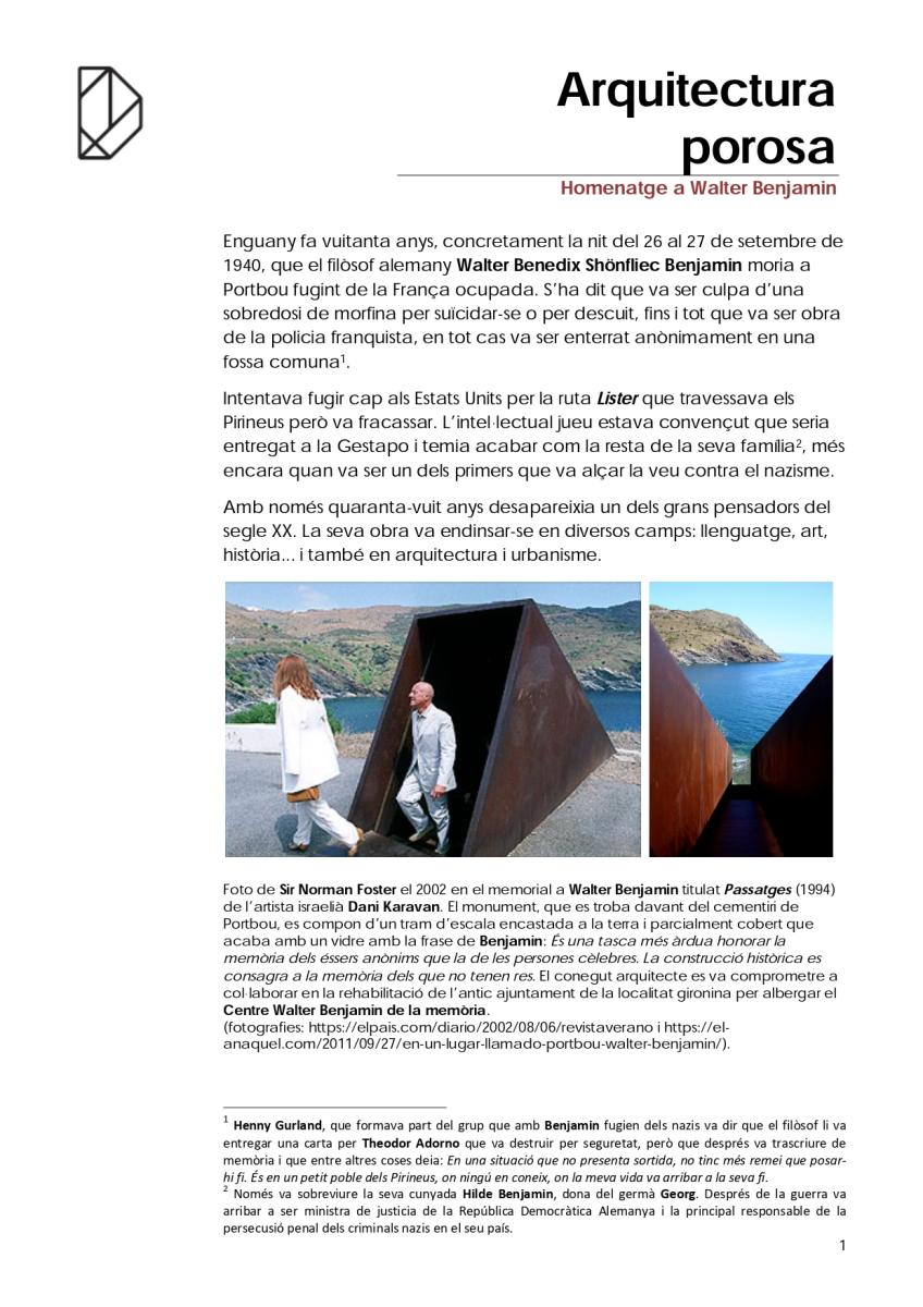 Enguany fa vuitanta anys que amb només quaranta-vuit anys desapareixia un dels grans pensadors del segle XX. La seva obra va endinsar-se en diversos camps: llenguatge, art, història... i també en arquitectura i urbanisme. Parlem del filòsof alemany Walter Benedix Shönfliec Benjamin.