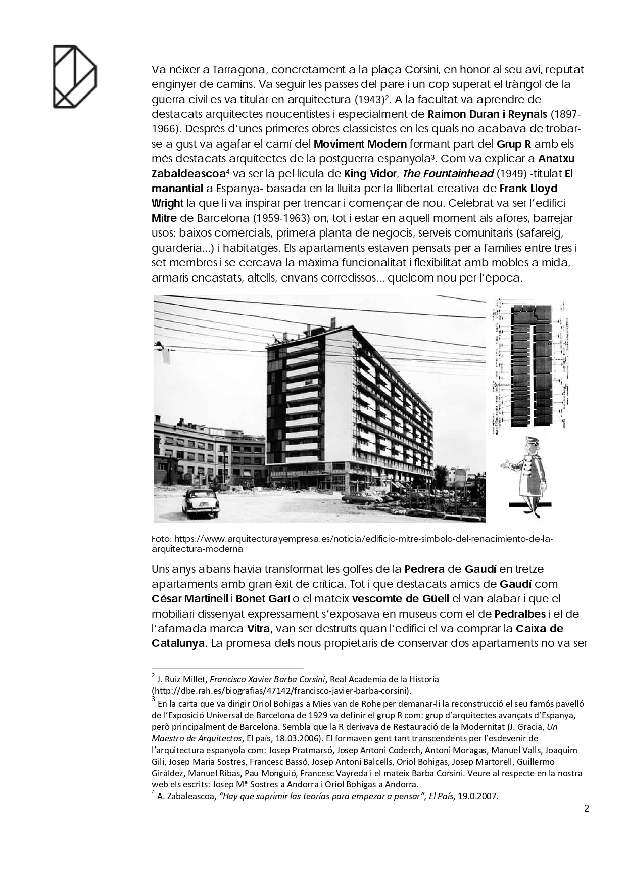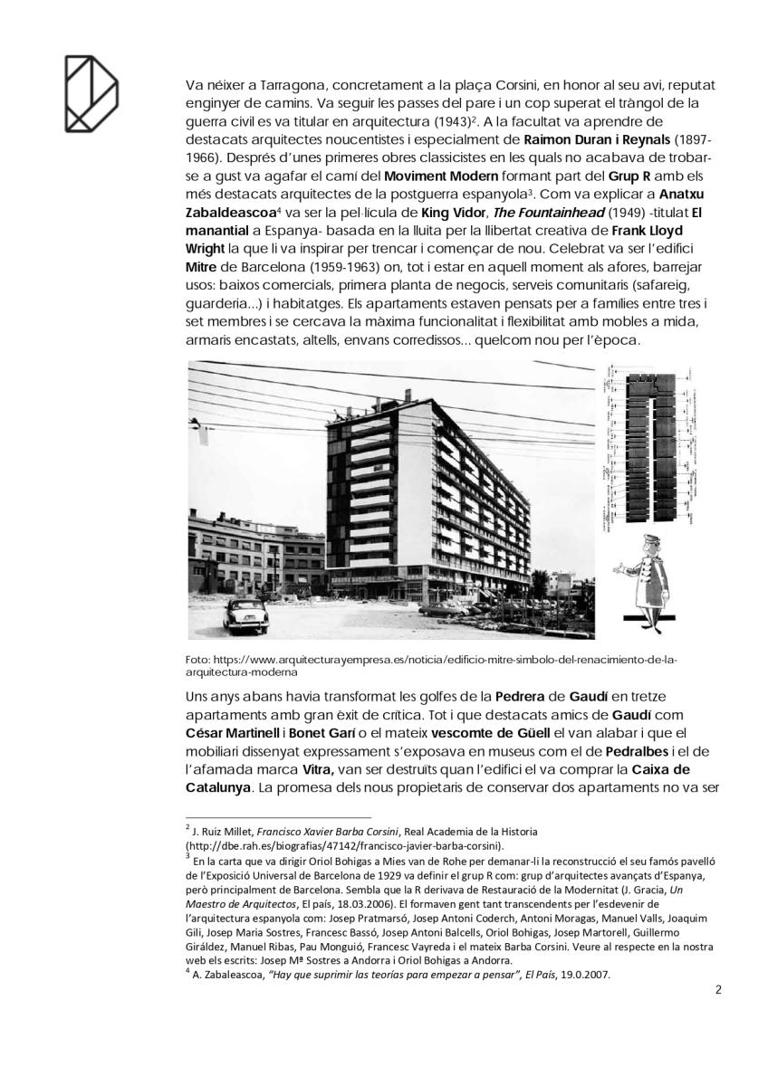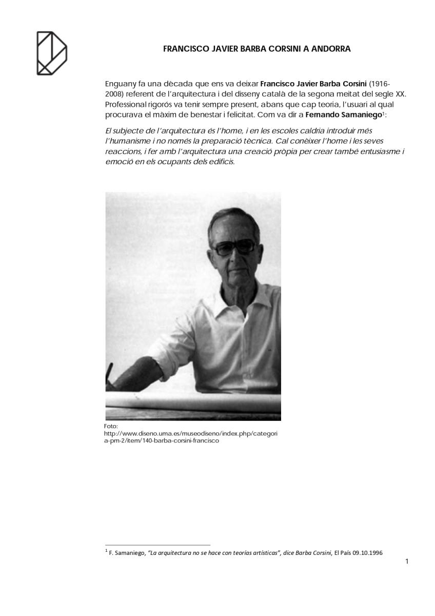 "El subjecte de l’arquitectura és l’home, i en les escoles caldria introduir més l’humanisme i no només la preparació tècnica. Cal conèixer l’home i les seves reaccions, i fer amb l’arquitectura una creació pròpia per crear també entusiasme i emoció en els ocupants dels edificis". Francisco Javier Barba Corsini