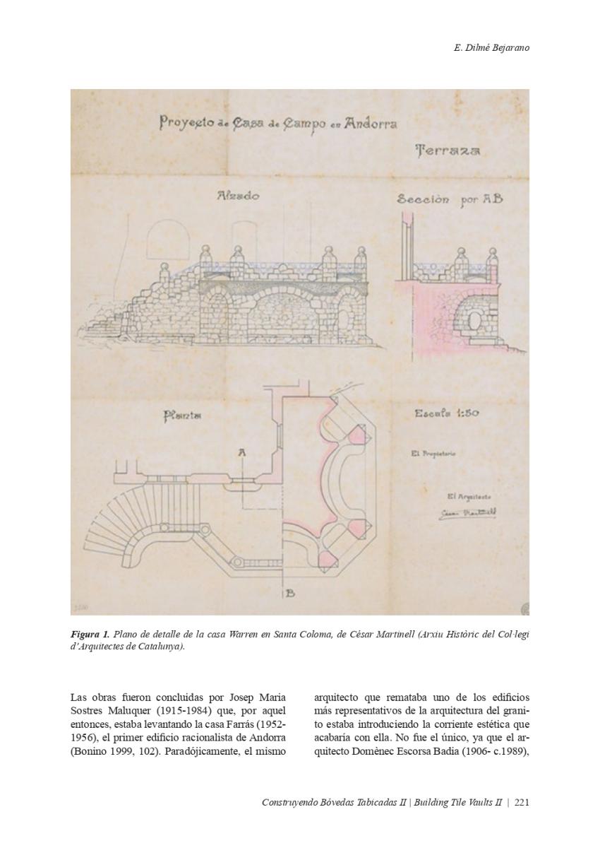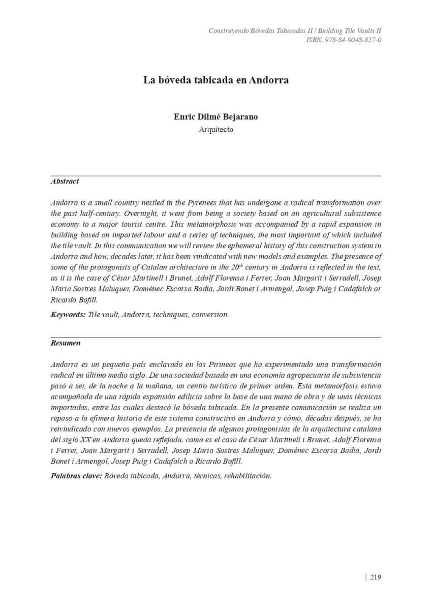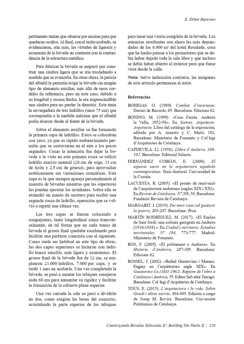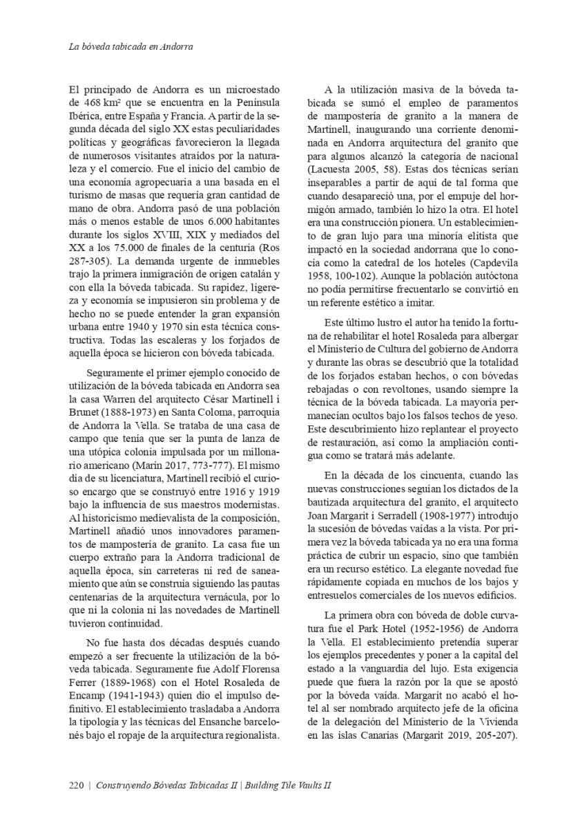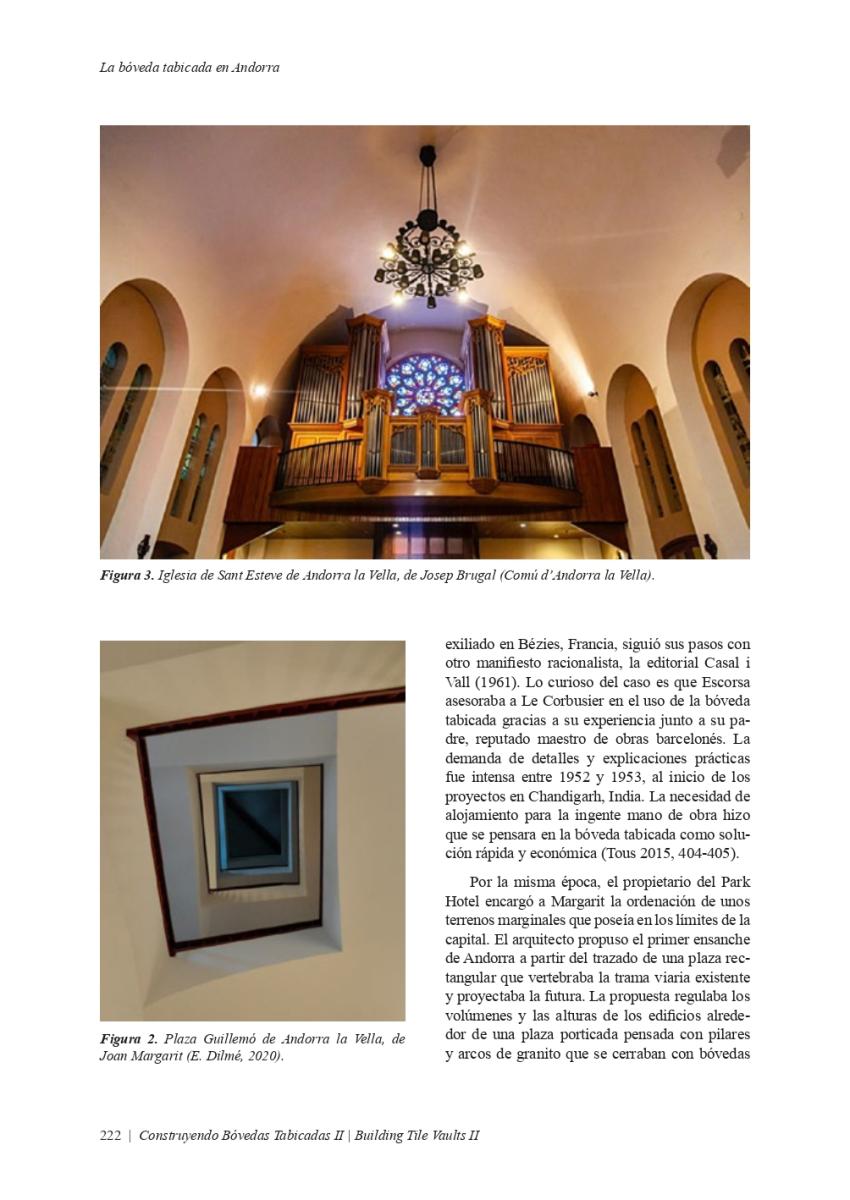 Article "LA BÓVEDA TABICADA EN ANDORRA", publicat en el llibre "CONSTRUYENDO BÓVEDAS TABICADAS II, BUILDING TILE VAULTS II". Edició a càrrec de: Fernando Vegas López-Manzanares, Rafael Martín Sánchez, Lidia García-Soriano i Camilla Mileto.