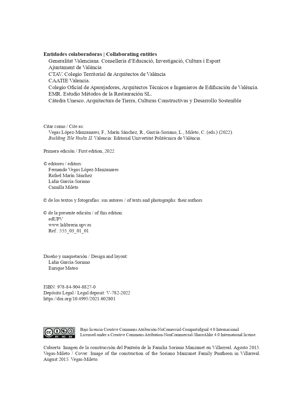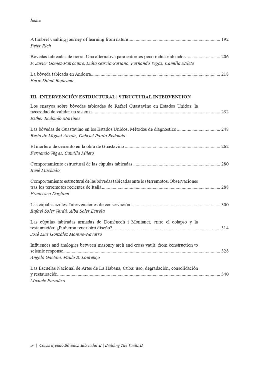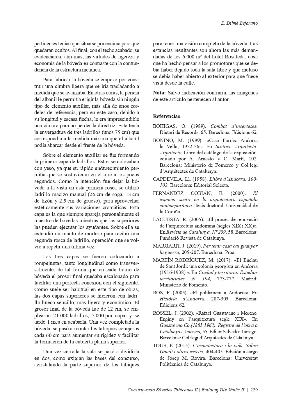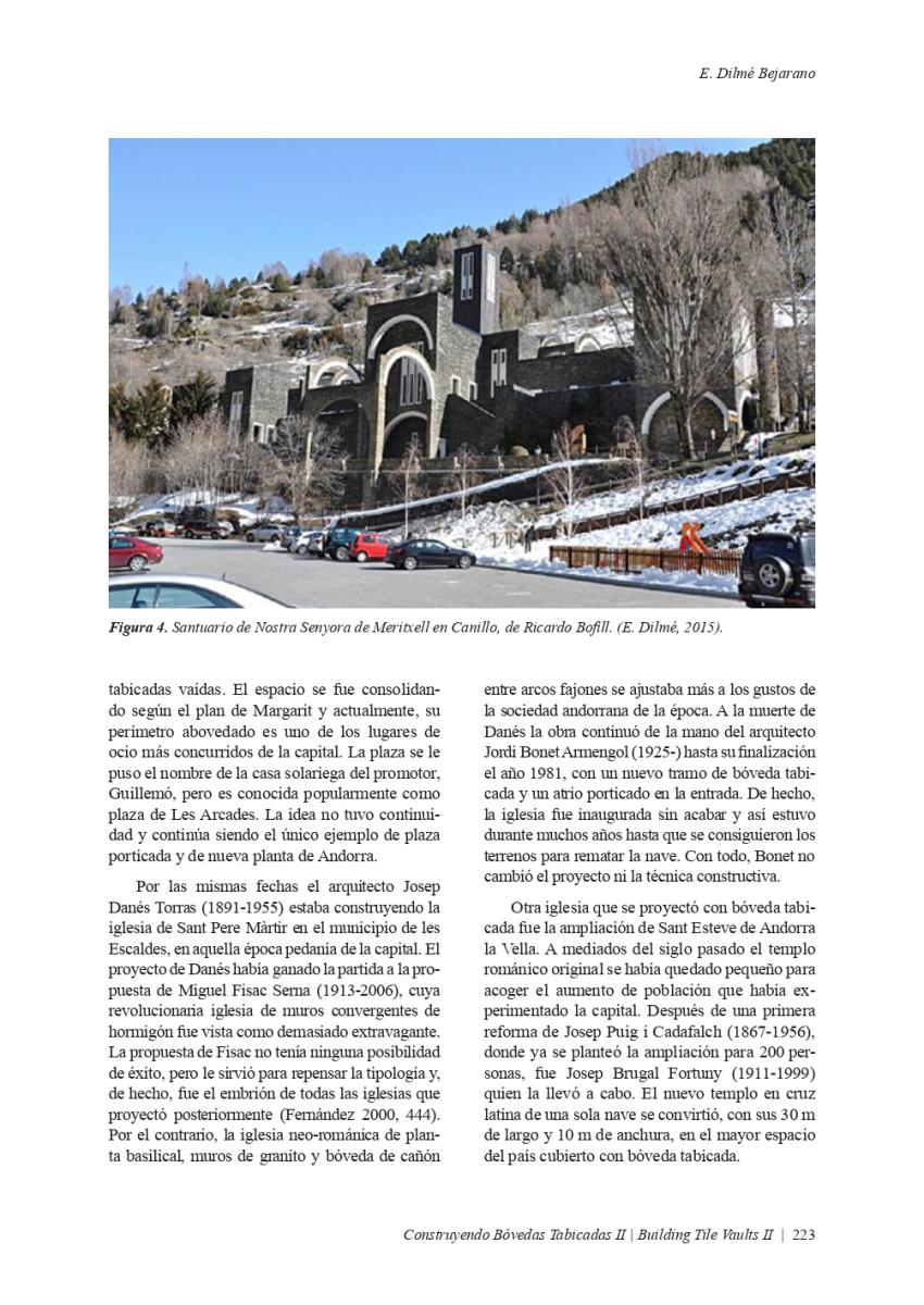 Article "LA BÓVEDA TABICADA EN ANDORRA", publicat en el llibre "CONSTRUYENDO BÓVEDAS TABICADAS II, BUILDING TILE VAULTS II". Edició a càrrec de: Fernando Vegas López-Manzanares, Rafael Martín Sánchez, Lidia García-Soriano i Camilla Mileto.