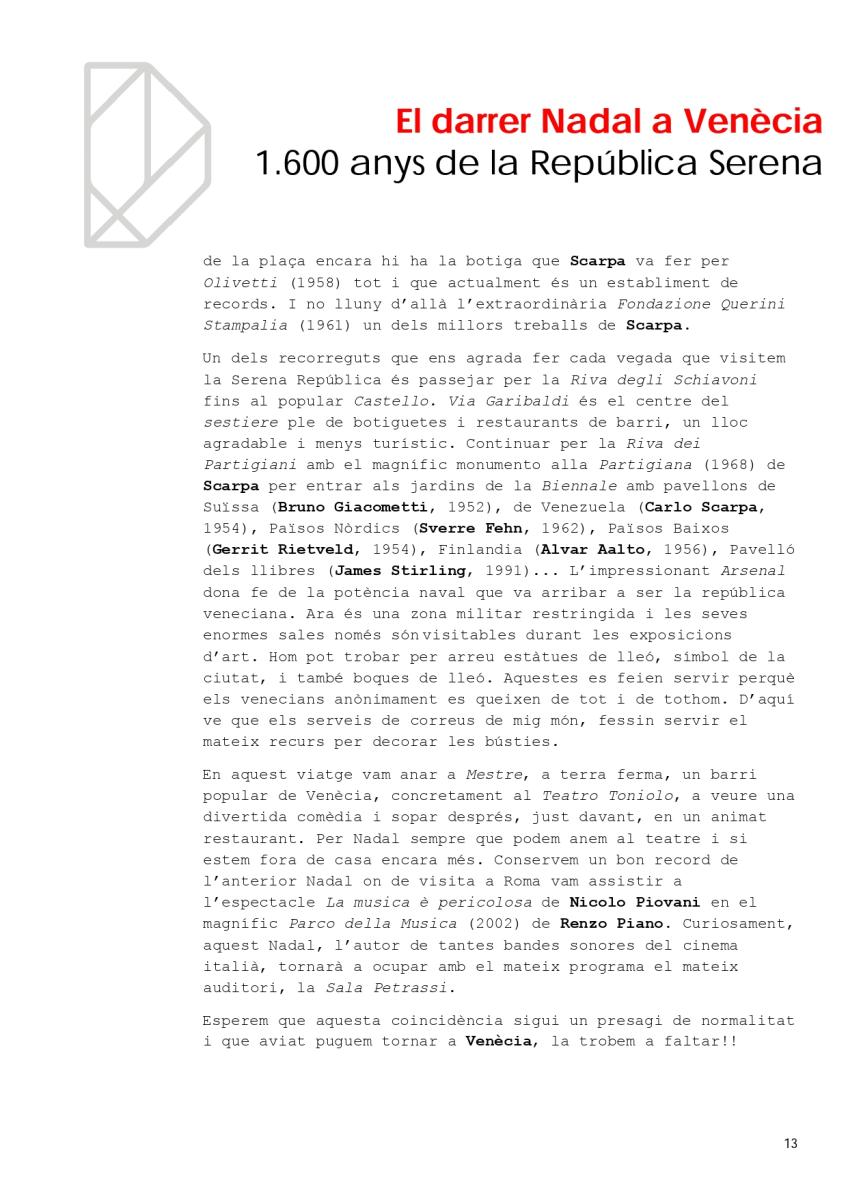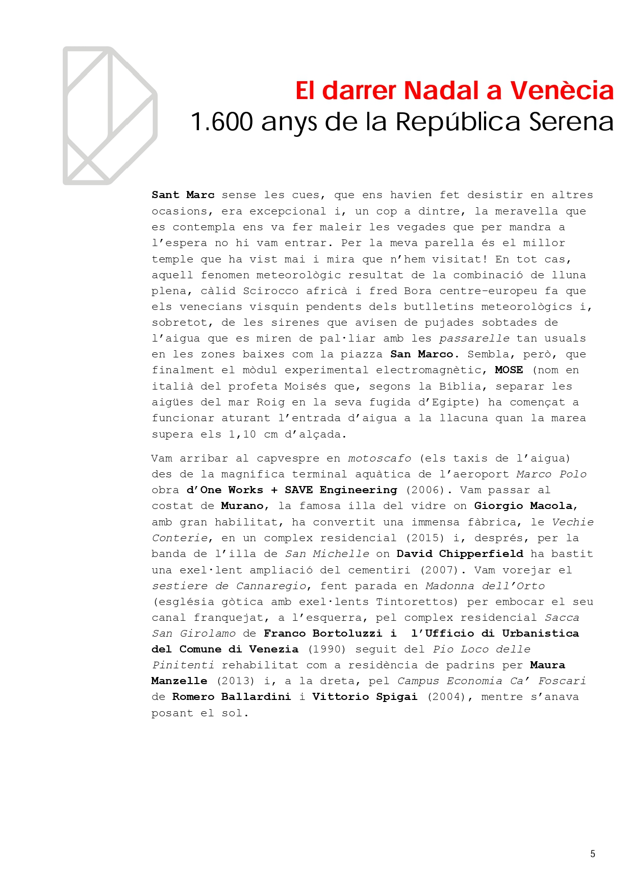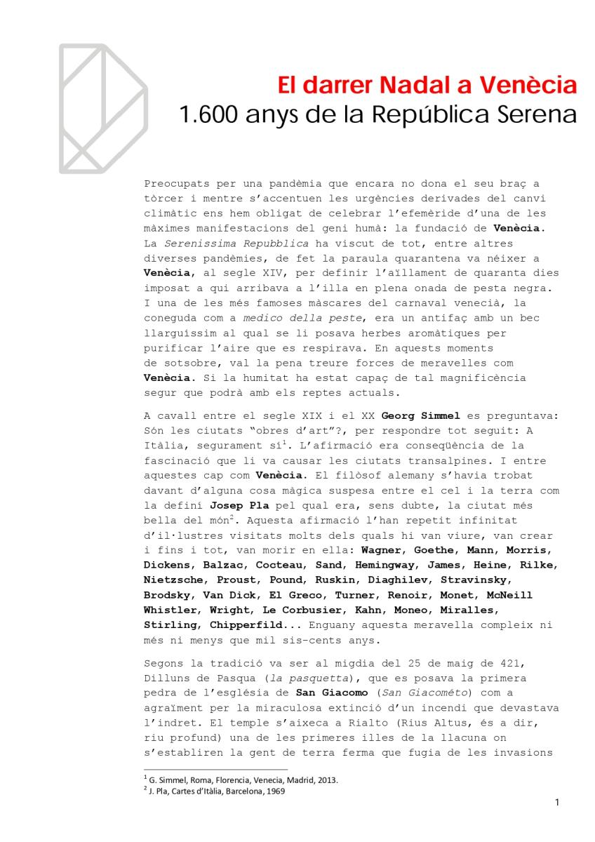 Preocupats per una pandèmia que encara no dona el seu braç a tòrcer i mentre s’accentuen les urgències derivades del canvi climàtic ens hem obligat de celebrar l’efemèride d’una de les màximes manifestacions del geni humà: la fundació de Venècia.