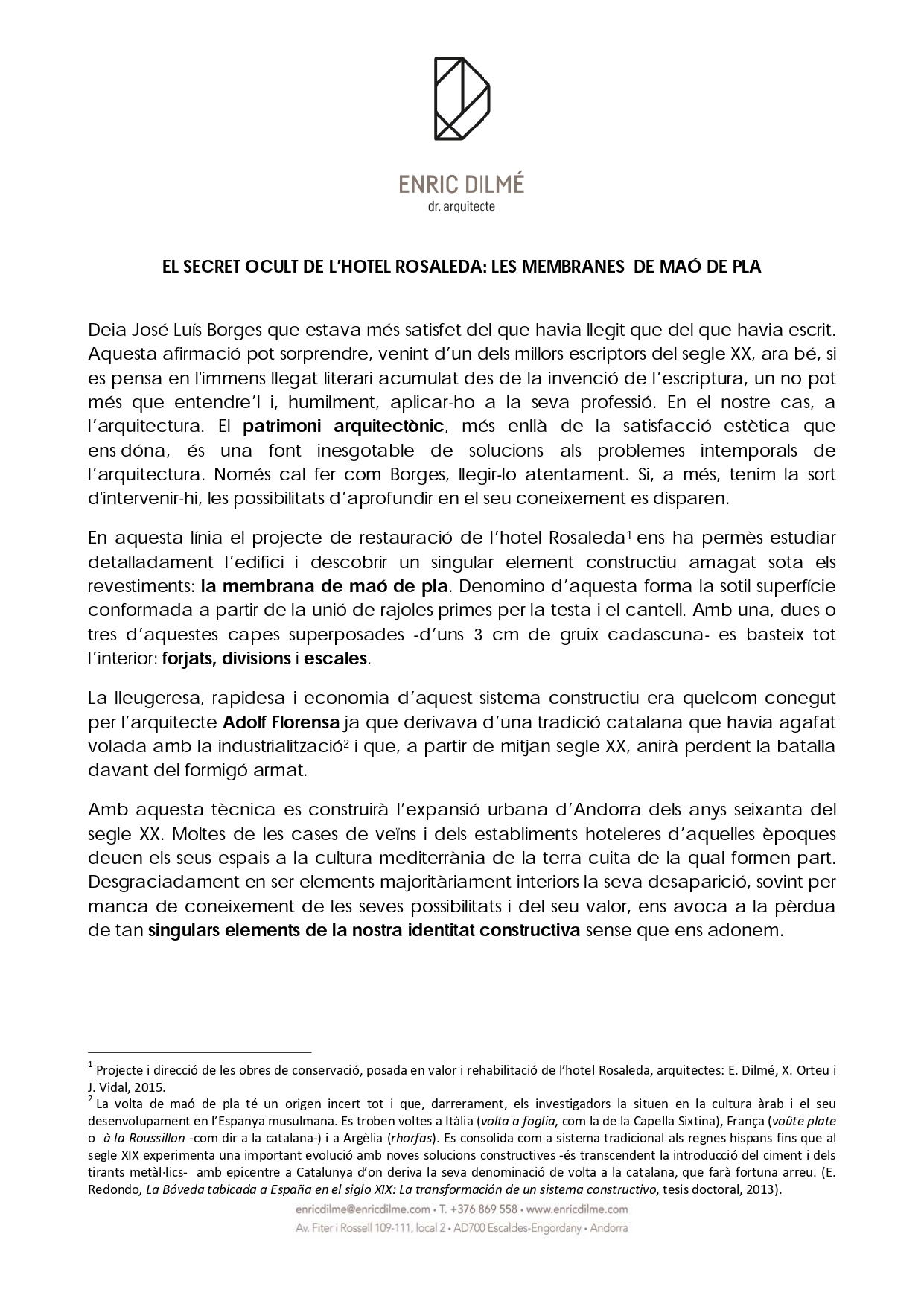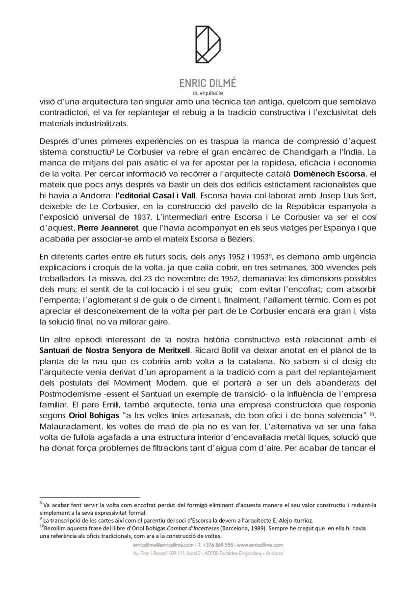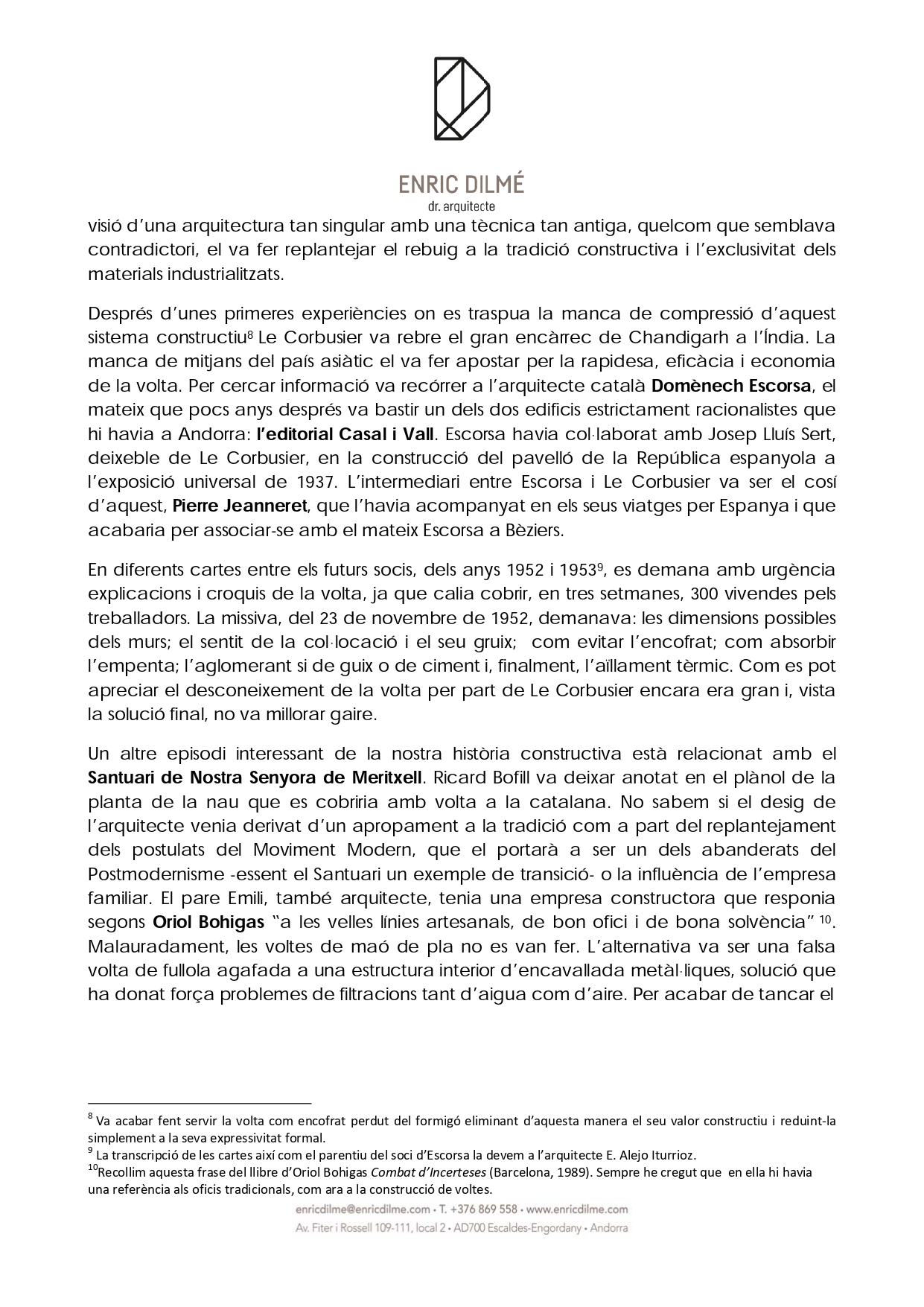Deia José Luís Borges que estava més satisfet del que havia llegit que del que havia escrit. Aquesta afirmació pot sorprendre, venint d’un dels millors escriptors del segle XX, ara bé, si es pensa en l'immens llegat literari acumulat des de la invenció de l’escriptura, un no pot més que entendre’l i, humilment, aplicar-ho a la seva professió. En el nostre cas, a l’arquitectura. El patrimoni arquitectònic, més enllà de la satisfacció estètica que ens dóna, és una font inesgotable de solucions als problemes intemporals de l’arquitectura. Només cal fer com Borges, llegir-lo atentament. Si, a més, tenim la sort d'intervenir-hi, les possibilitats d’aprofundir en el seu coneixement es disparen.
