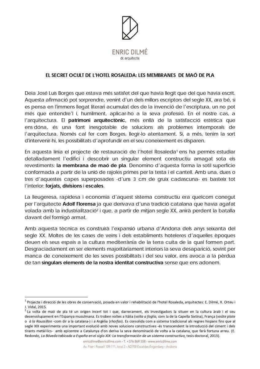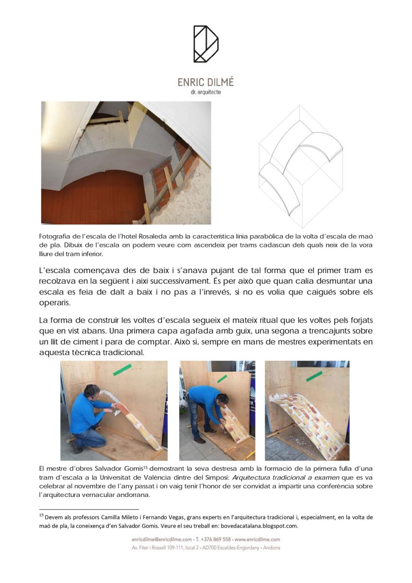 En aquesta línia el projecte de restauració de l’hotel Rosaleda ens ha permès estudiar detalladament l’edifici i descobrir un singular element constructiu amagat sota els revestiments: la membrana de maó de pla.