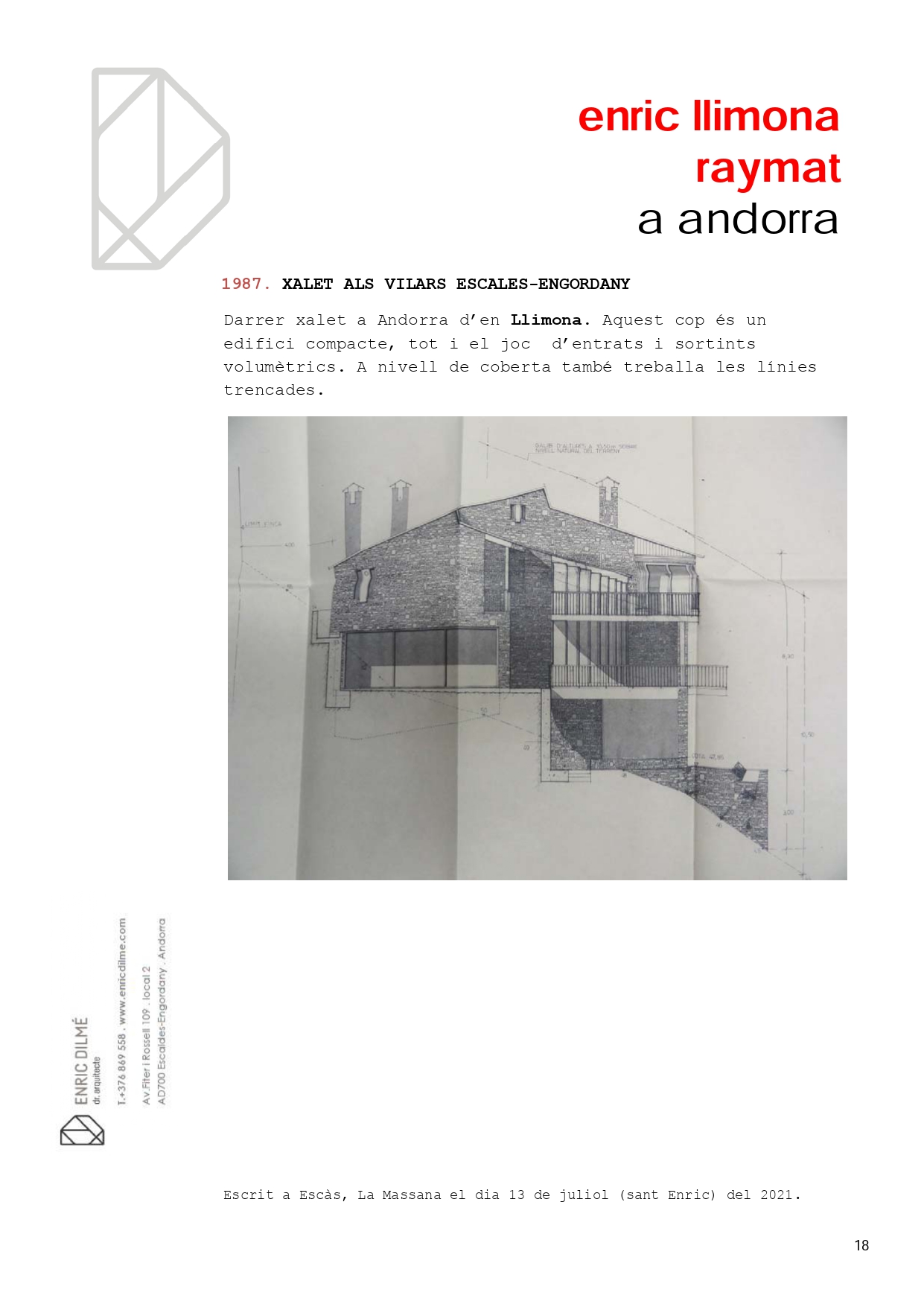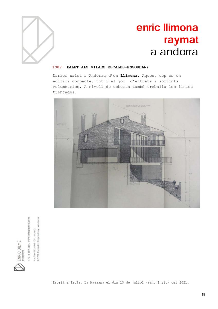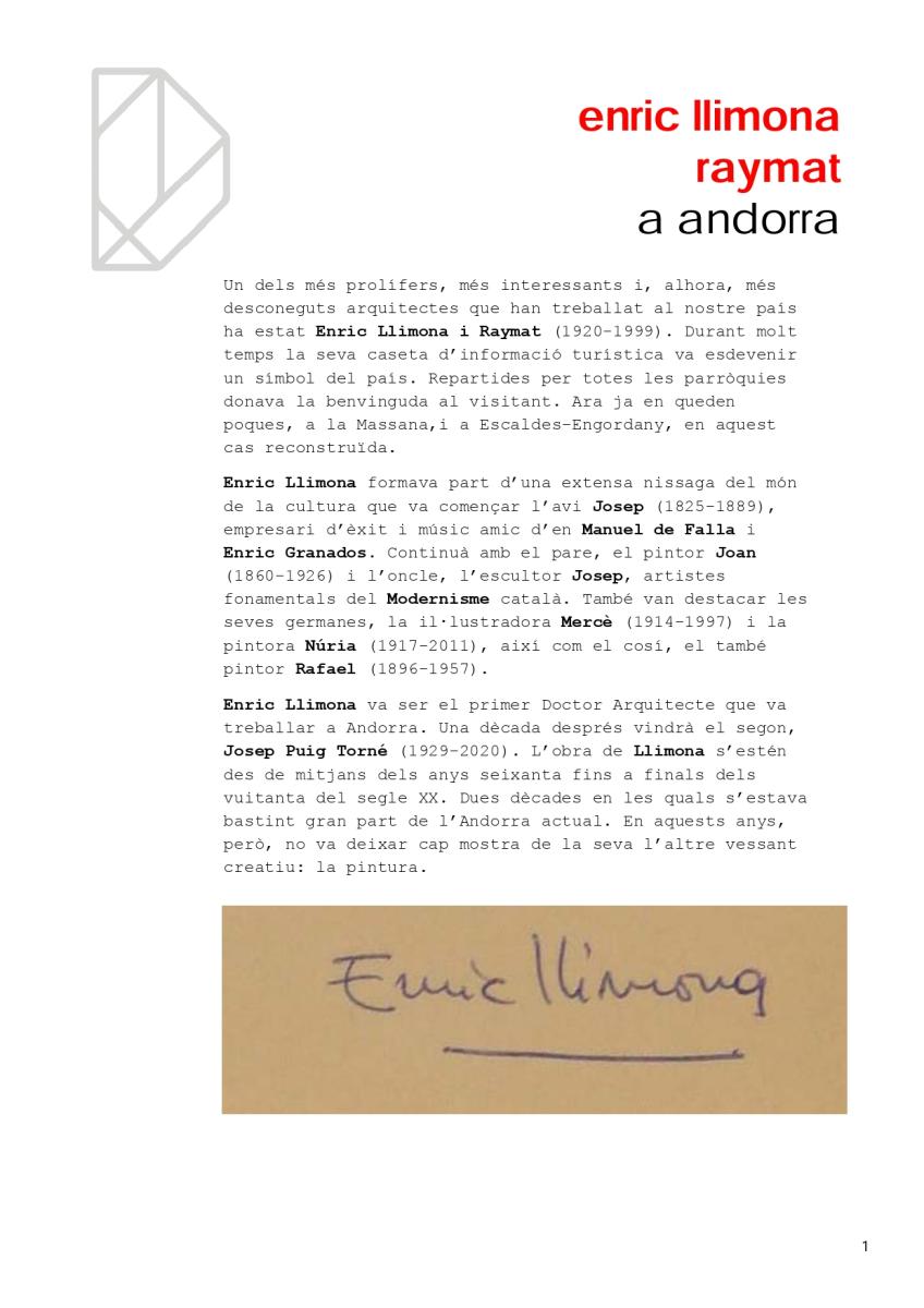 Un dels més prolífers, més interessants i, alhora, més desconeguts arquitectes que han treballat al nostre país ha estat Enric Llimona i Raymat (1920-1999). Durant molt temps la seva caseta d’informació turística va esdevenir un símbol del país.