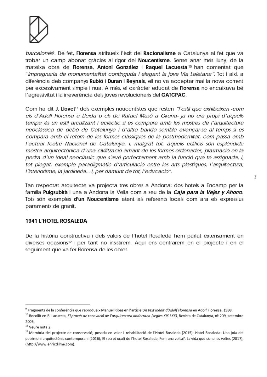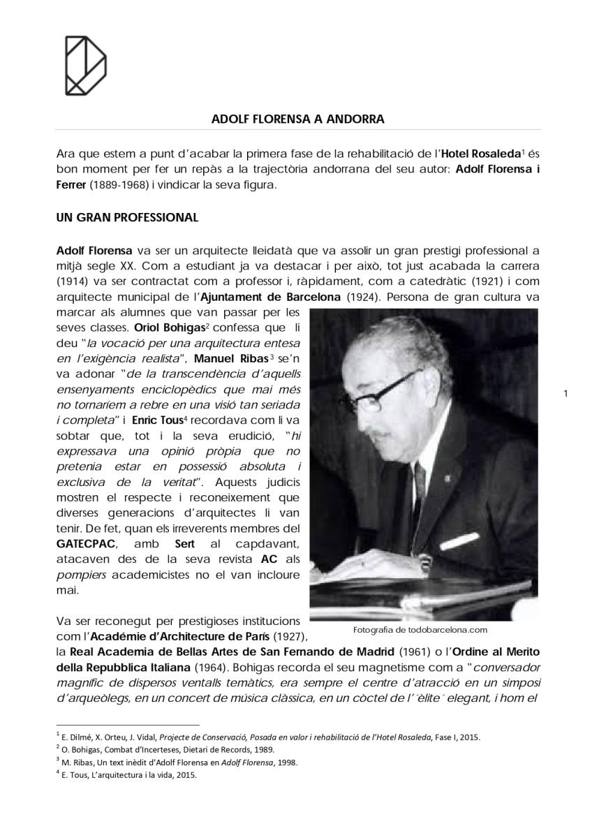 Ara que estem a punt d’acabar la primera fase de la rehabilitació de l’Hotel Rosaleda és bon moment per fer un repàs a la trajectòria andorrana del seu autor: Adolf Florensa i Ferrer (1889-1968) i vindicar la seva figura.