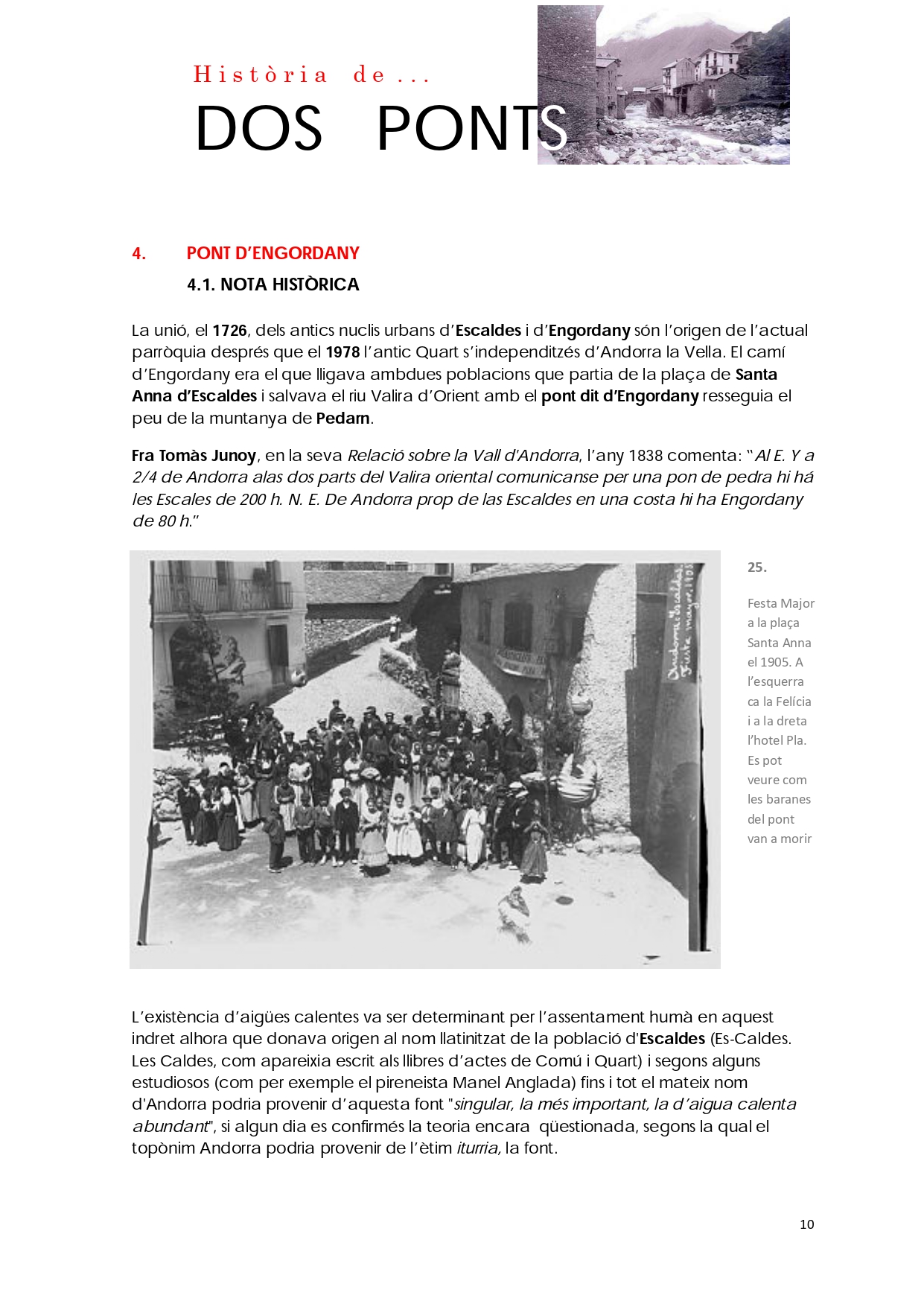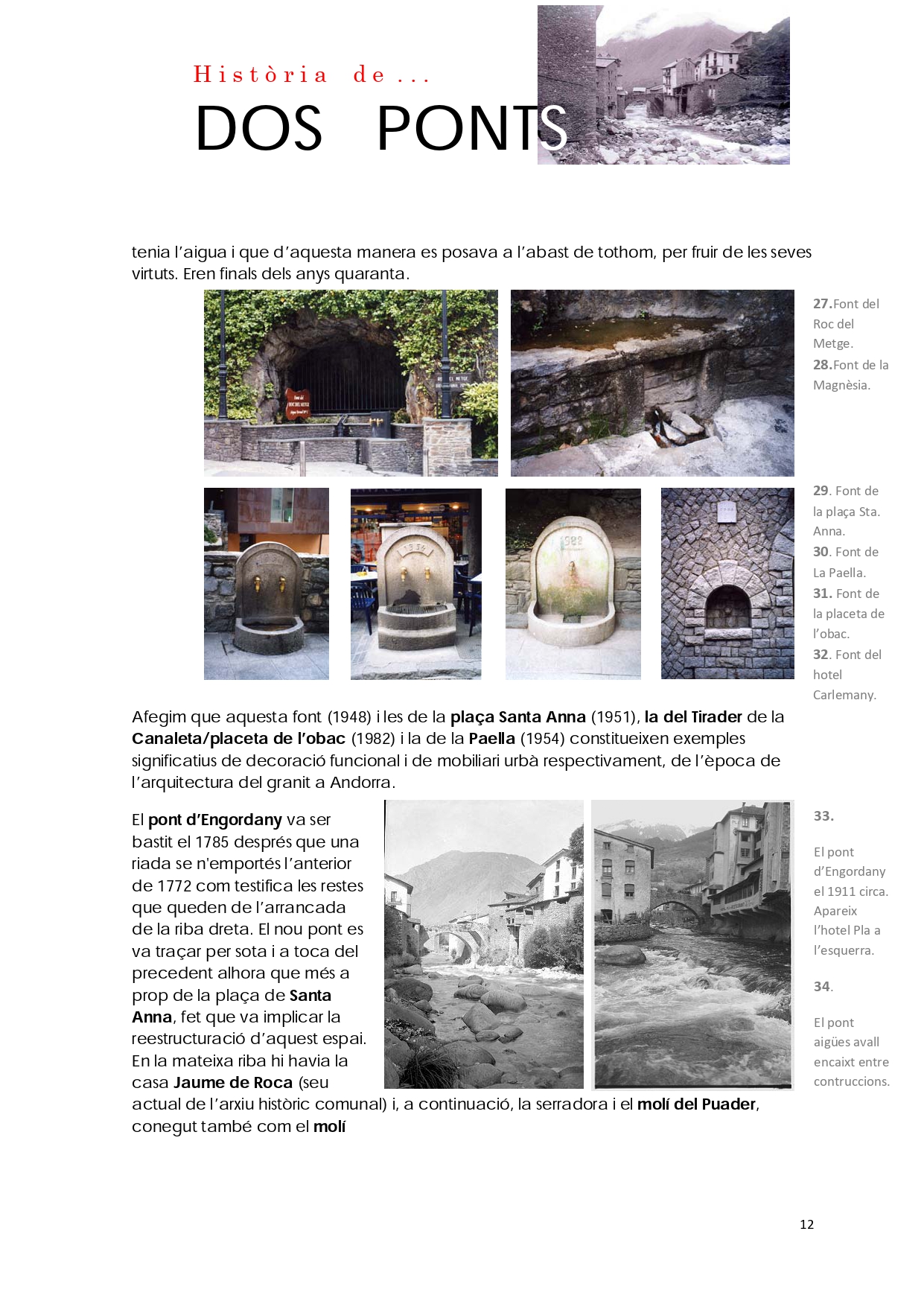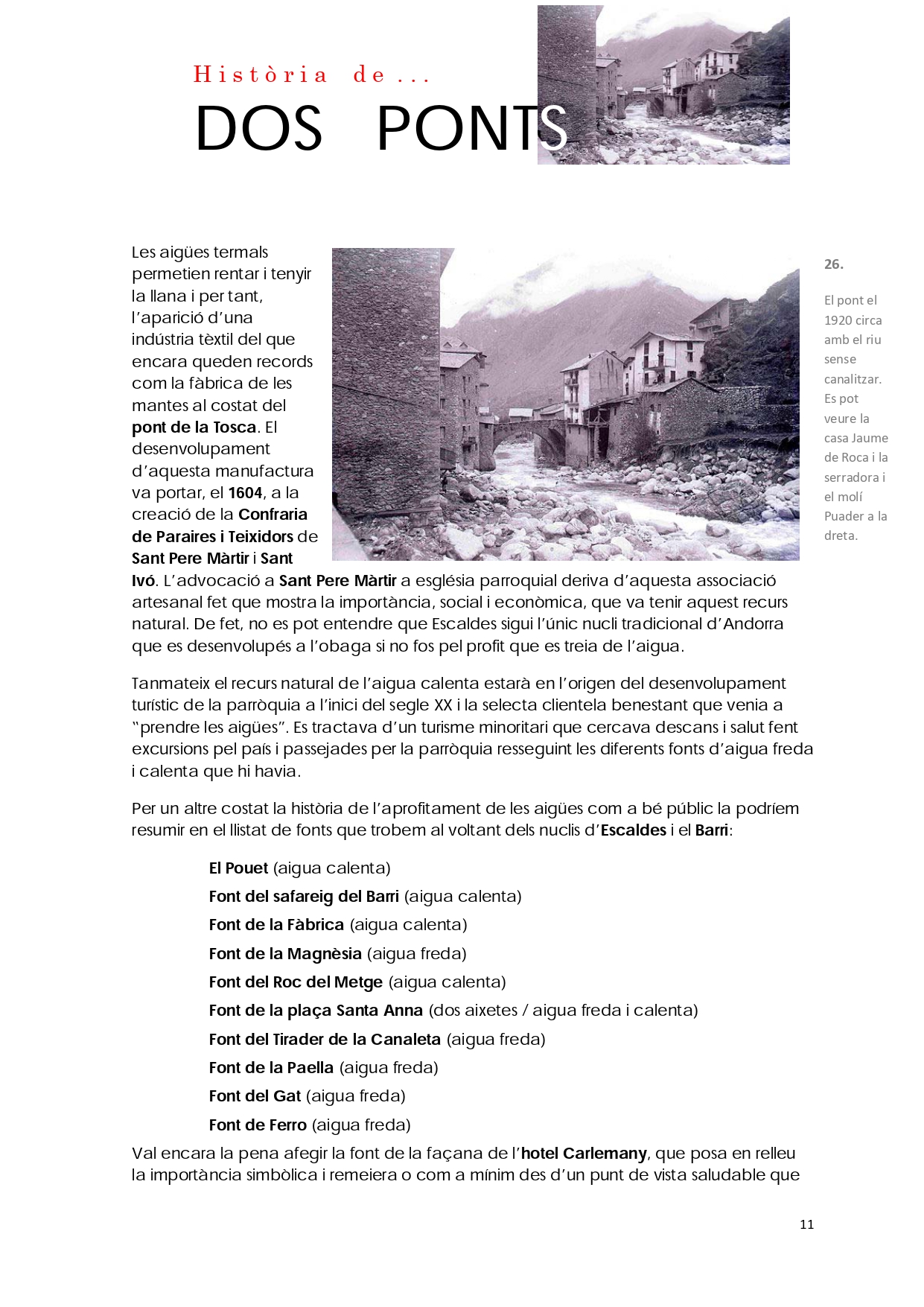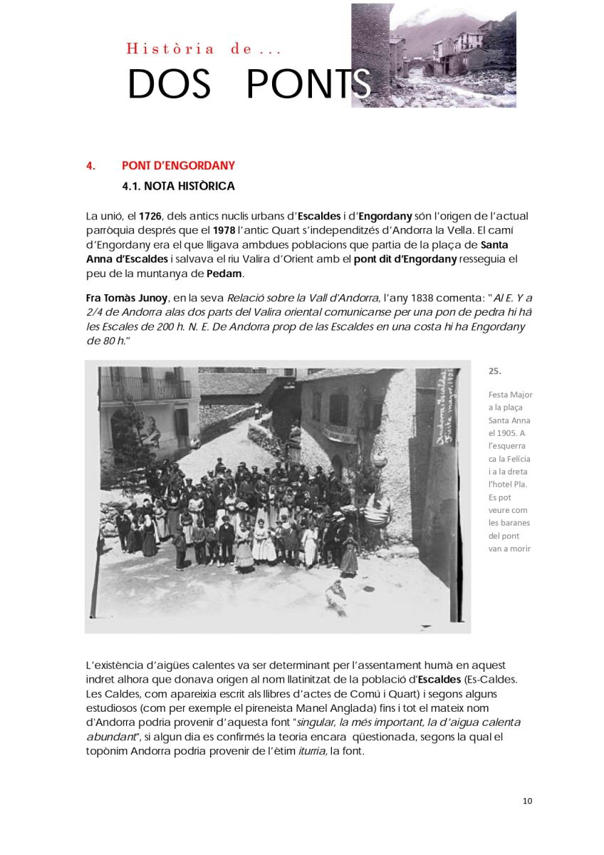 Del conjunt d'elements patrimonials a conservar en la part alta d'Escaldes-Engordany, n'hi ha dos que destaquen per sobre de tots: el pont d'Engordany i el pont de la Tosca.