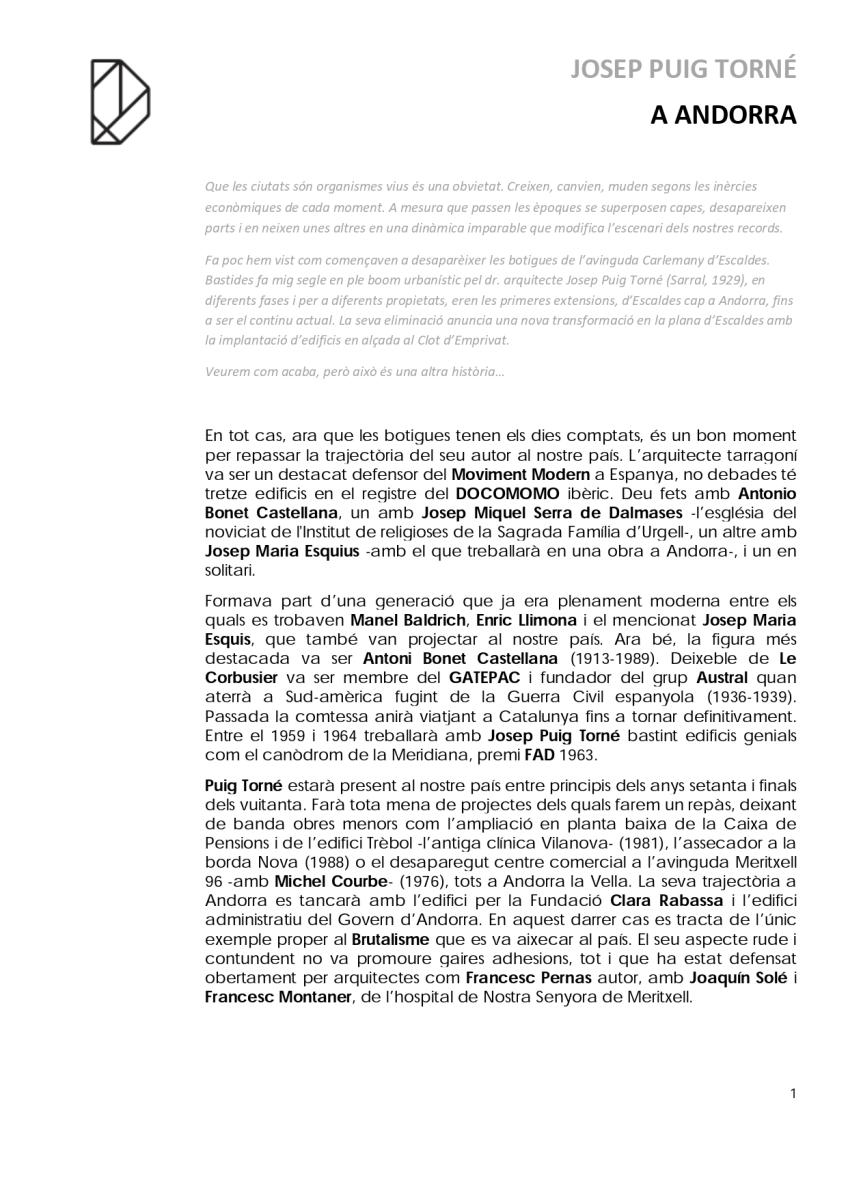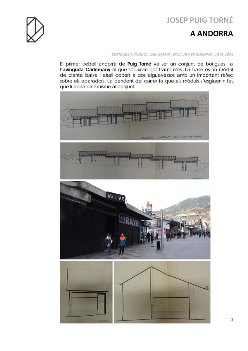 Fa poc hem vist com començaven a desaparèixer les botigues de l’avinguda Carlemany d’Escaldes. Bastides fa mig segle en ple boom urbanístic pel dr. arquitecte Josep Puig Torné (Sarral, 1929), en diferents fases i per a diferents propietats, eren les primeres extensions, d’Escaldes cap a Andorra, fins a ser el continu actual. La seva eliminació anuncia una nova transformació en la plana d’Escaldes amb la implantació d’edificis en alçada al Clot d’Emprivat.