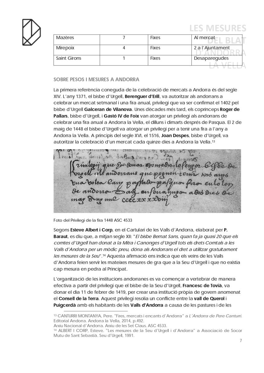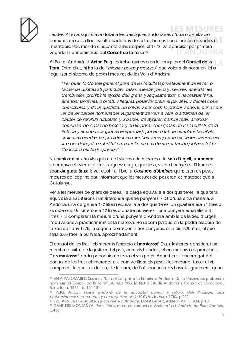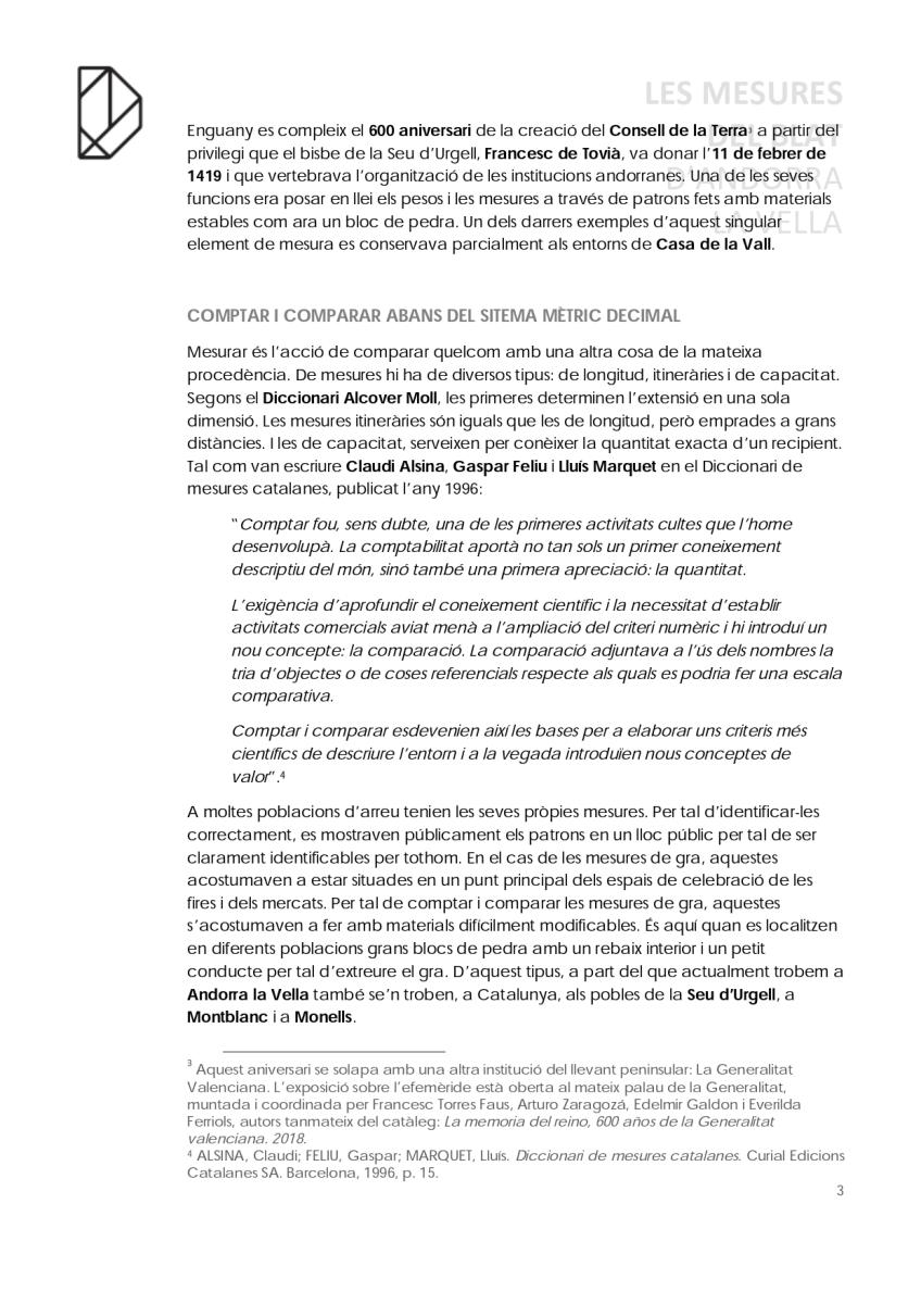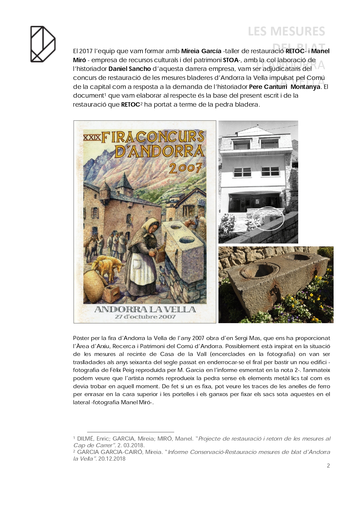 Enguany es compleix el 600 aniversari de la creació del Consell de la Terra a partir del privilegi que el bisbe de la Seu d’Urgell, Francesc de Tovià, va donar l’11 de febrer de 1419 i que vertebrava l’organització de les institucions andorranes. Una de les seves funcions era posar en llei els pesos i les mesures a través de patrons fets amb materials estables com ara un bloc de pedra. Un dels darrers exemples d’aquest singular element de mesura es conservava parcialment als entorns de Casa de la Vall.