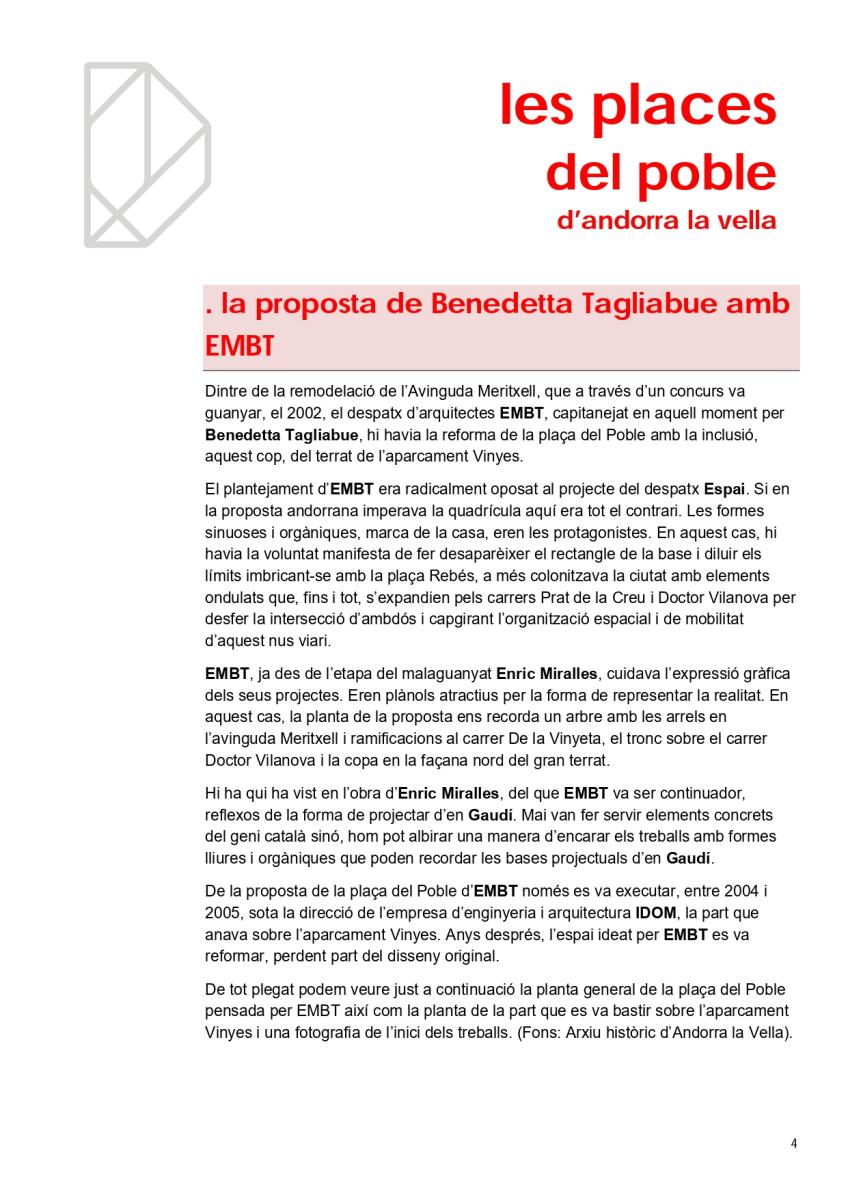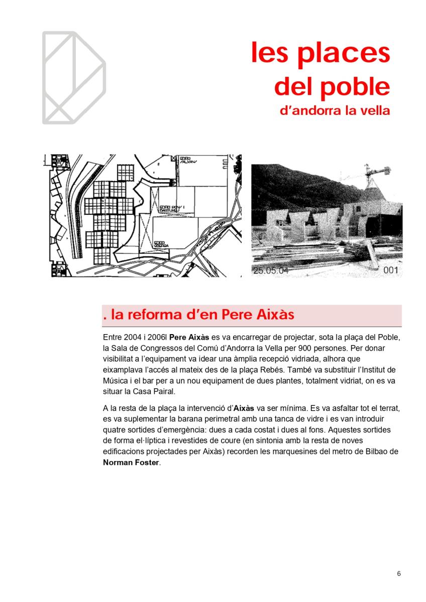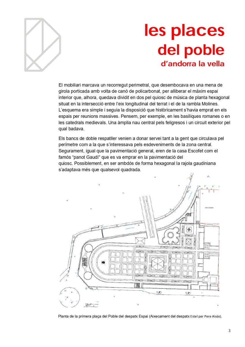 Les ciutats contemporànies solen viure en una frenètica transformació. El mercat, la política, les modes, o simplement la ràpida obsolescència dels espais, impulsen canvis que capgiren el seu perfil a cada generació, per no dir a cada dècada, sobretot pel que fa a l’espai públic. En les nostres contrades avingudes, carrers i places muden de pell diverses vegades al llarg de les nostres vides. Un cas paradigmàtic és l’espai batejat com a plaça del Poble d’Andorra la Vella.