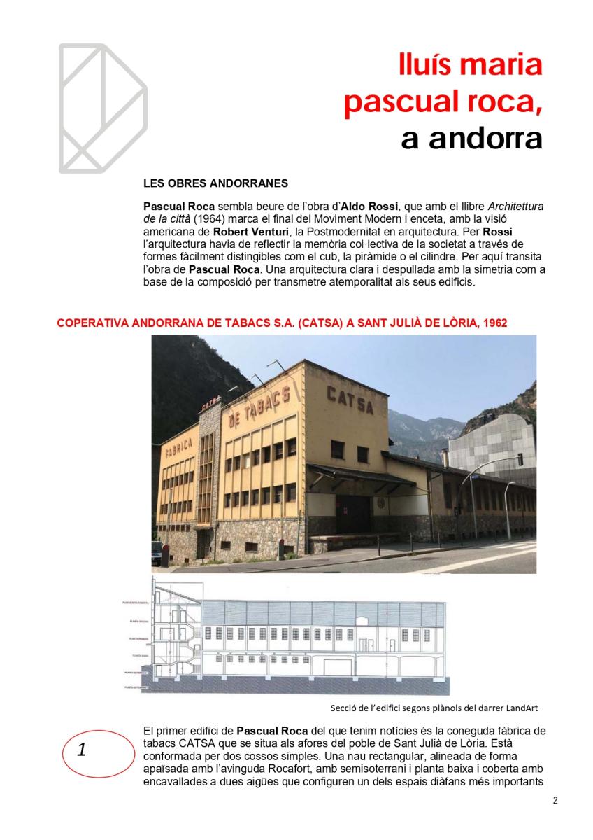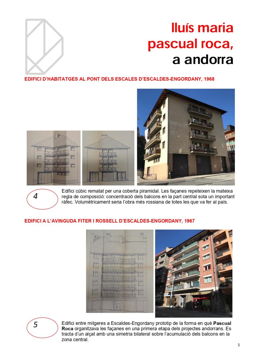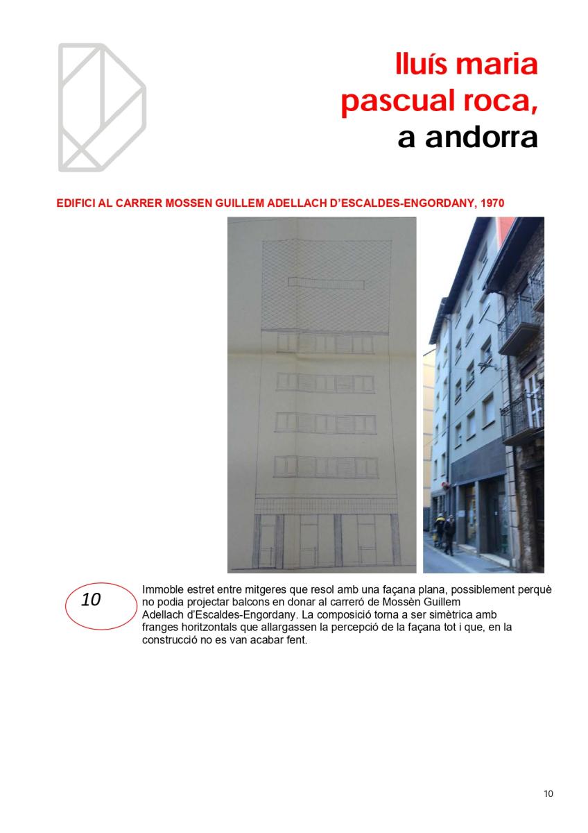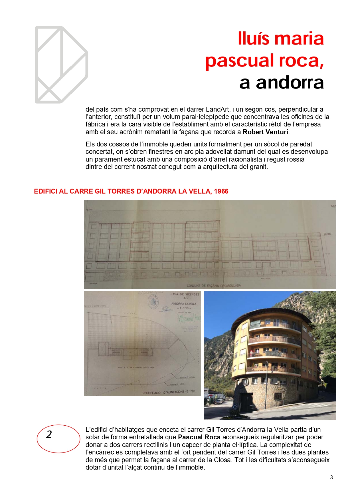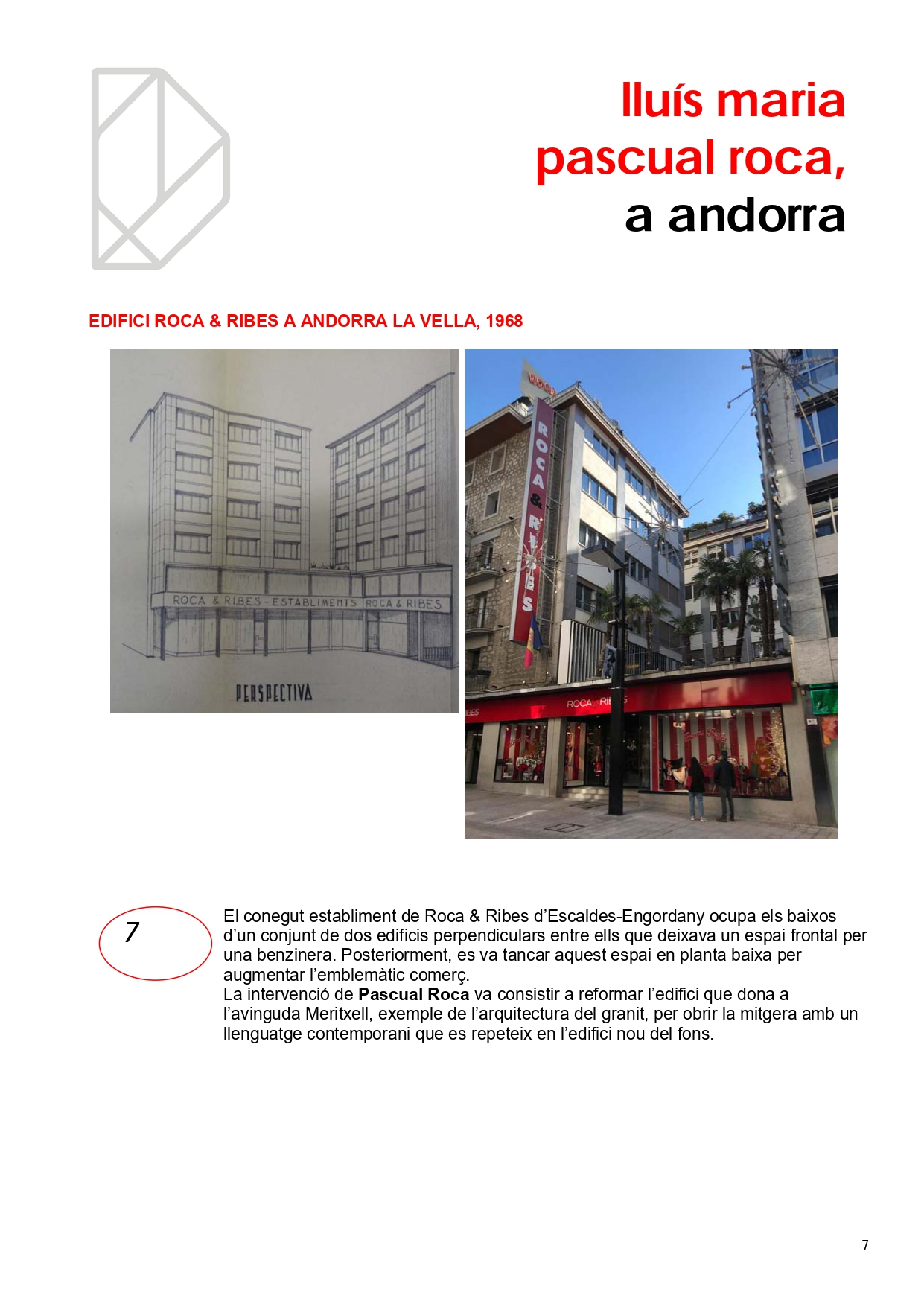 Com d’altres tècnics que han bastit l’Andorra física del segle XX Lluís Maria Pascual Roca (1915-2009) tenia una sèrie d’actuacions urbanístiques i d’edificis que de sempre m’havien interessat. Començant per aquells complexs d’habitatges amb passatges com ara el del Roc dels Escolls a Andorra la Vella o el del Pont dels Escalls i el de Prat de casa Muntanya a Escaldes Engordany, i seguint per edificis com ara el de CATSA (Cooperativa andorrana de tabacs S.A.), Roca & Ribes o l’edifici d’habitatges de la plaça de la Germandat a Sant Julià de Lòria a on vaig treballar, al 5è 1a, durant la carrera i els primers anys professionals amb un altre gran tècnic, Pere Gonzàlez de Alaiza i Fontanillas.