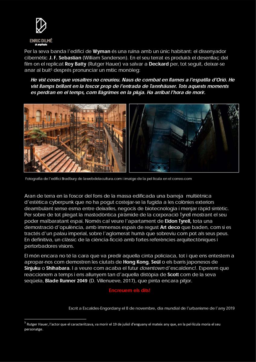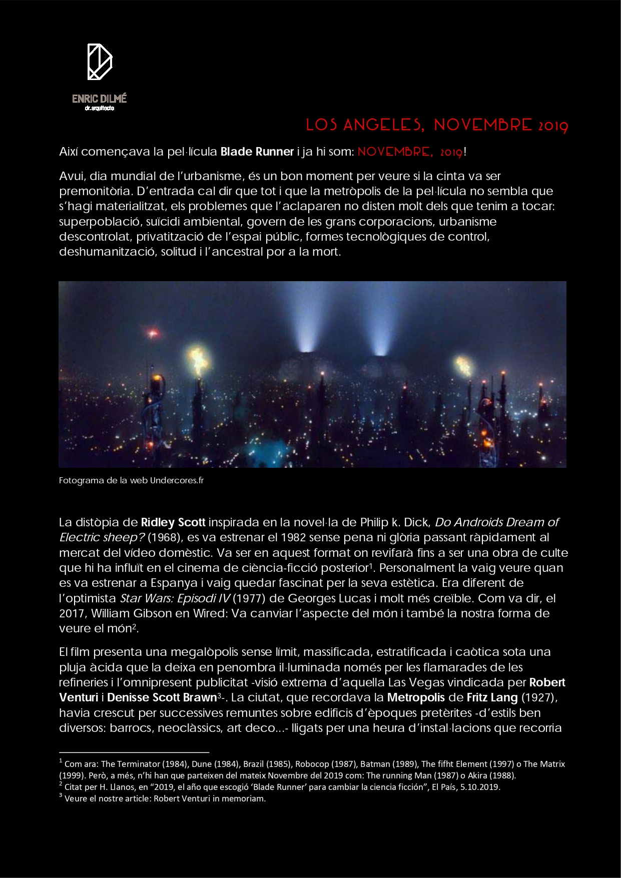 Així començava la pel·lícula de Blade Runner i ja hi som: NOVEMBRE, 2019.