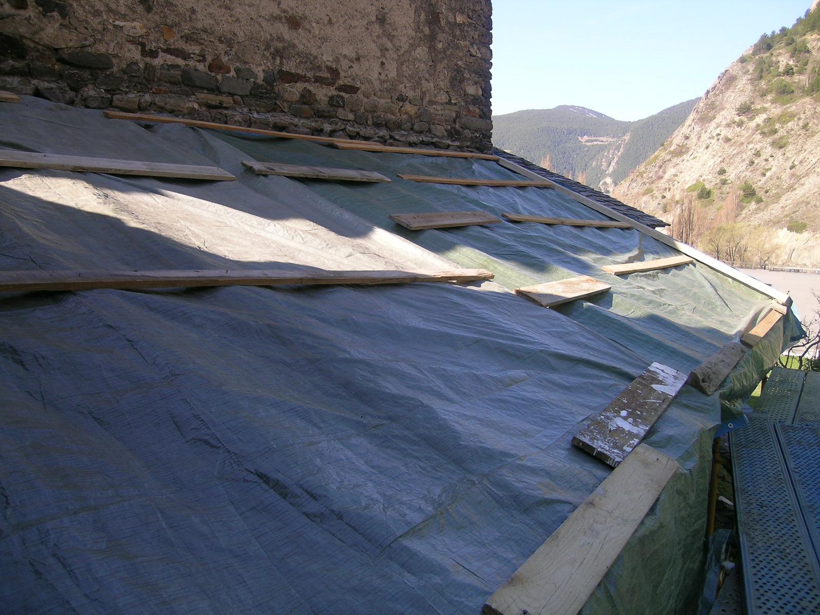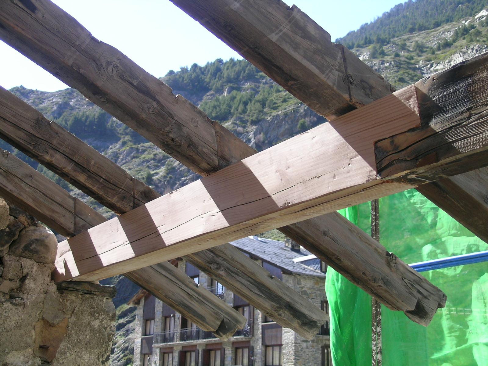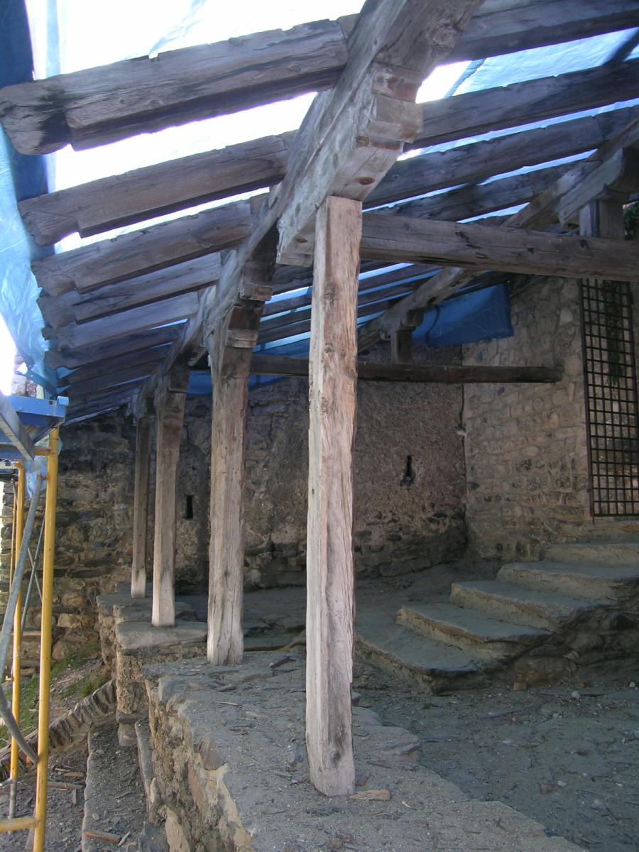 El porxo de Sant Joan presentava un bigam molt deteriorat amb pèrdua de secció i, de retruc, de capacitat portant. Els caps de les bigues així com els puntals estaven esculpits i per tant tenien una càrrega artística que calia conservar. La solució va ser substituir els elements linials de fusta que no tenen cap càrrega expressiva per uns nous de fusta vella de les mateixes seccions i acoplar les parts escultòriques. Hom pot trobar l'encaix entre ambdues parts, és a dir, la substitució sense caure en el fals històric però, per contra, a l'haver restituit la forma del porxo recuperem el valor arquitectònic del mateix.