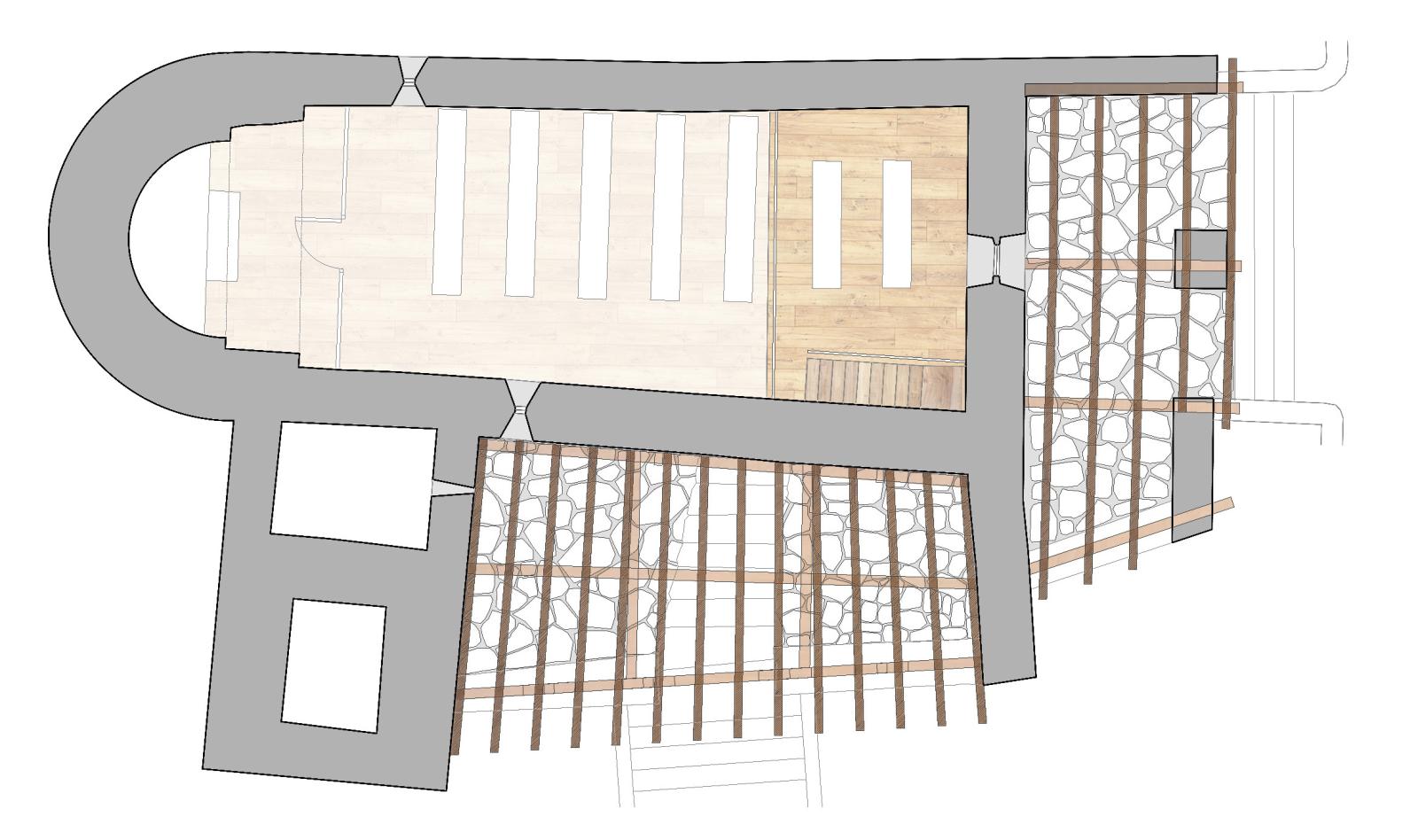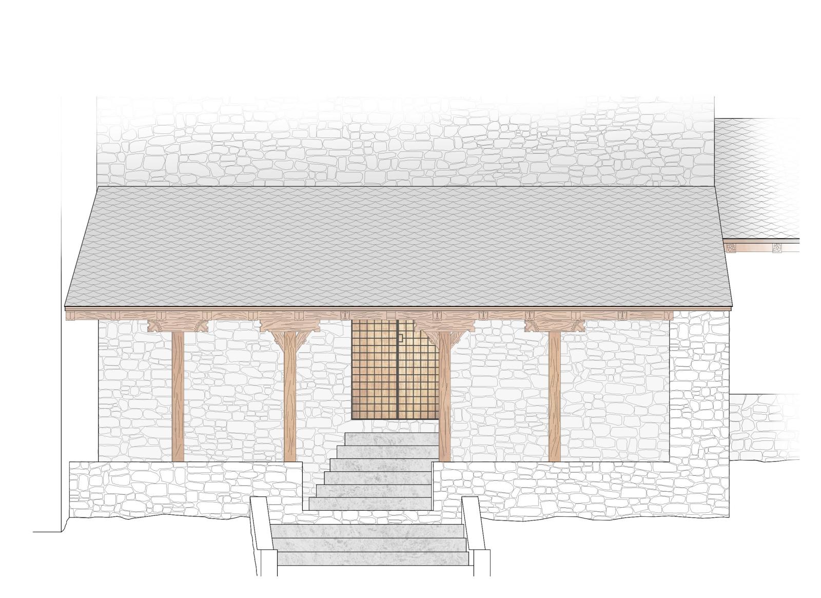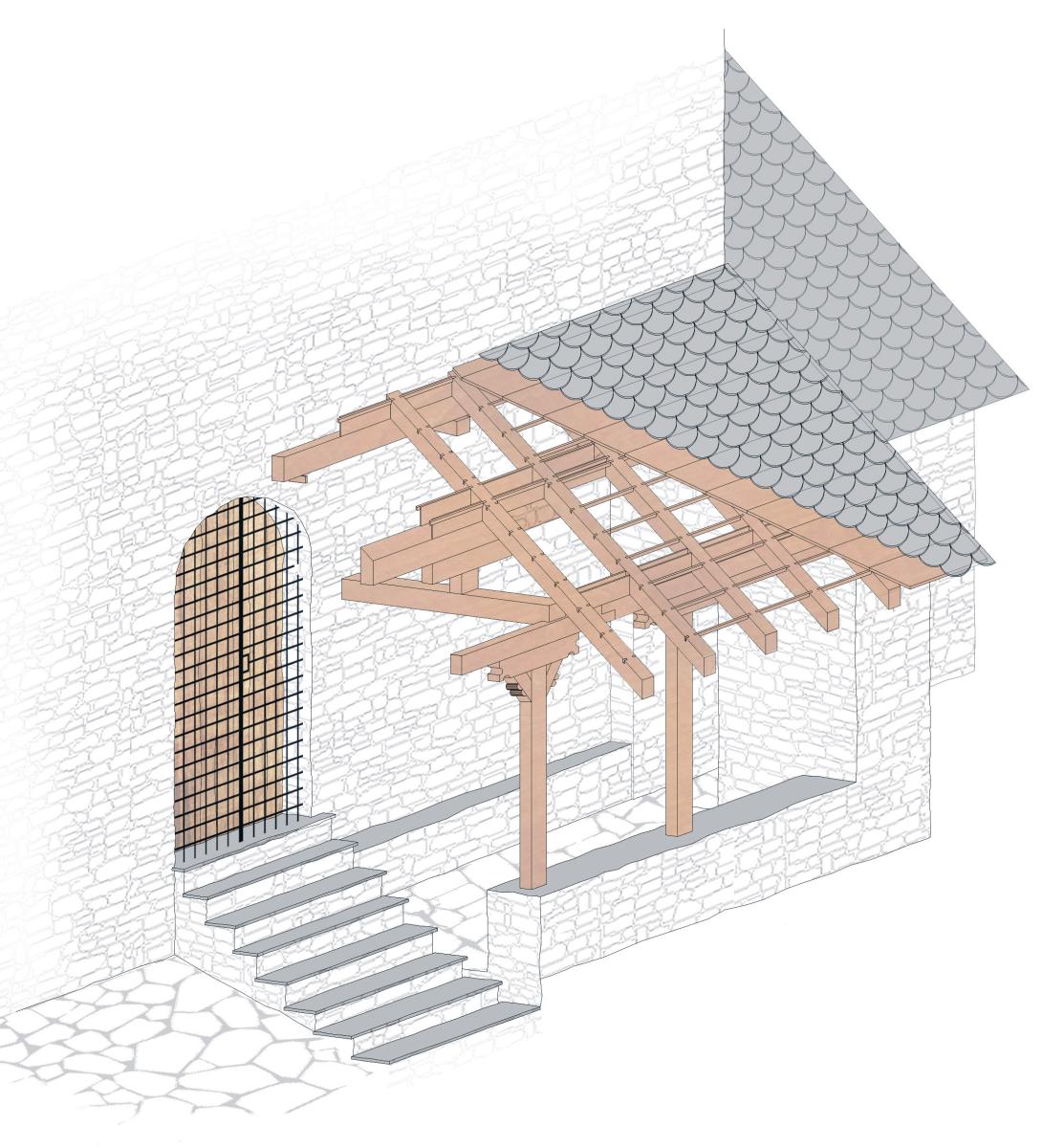 El porxo de Sant Joan presentava un bigam molt deteriorat amb pèrdua de secció i, de retruc, de capacitat portant. Els caps de les bigues així com els puntals estaven esculpits i per tant tenien una càrrega artística que calia conservar. La solució va ser substituir els elements linials de fusta que no tenen cap càrrega expressiva per uns nous de fusta vella de les mateixes seccions i acoplar les parts escultòriques. Hom pot trobar l'encaix entre ambdues parts, és a dir, la substitució sense caure en el fals històric però, per contra, a l'haver restituit la forma del porxo recuperem el valor arquitectònic del mateix.