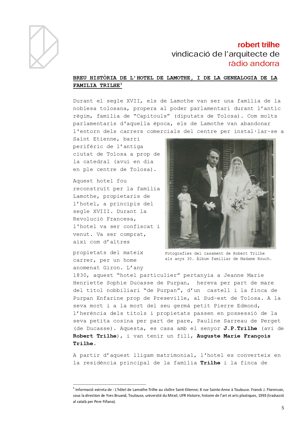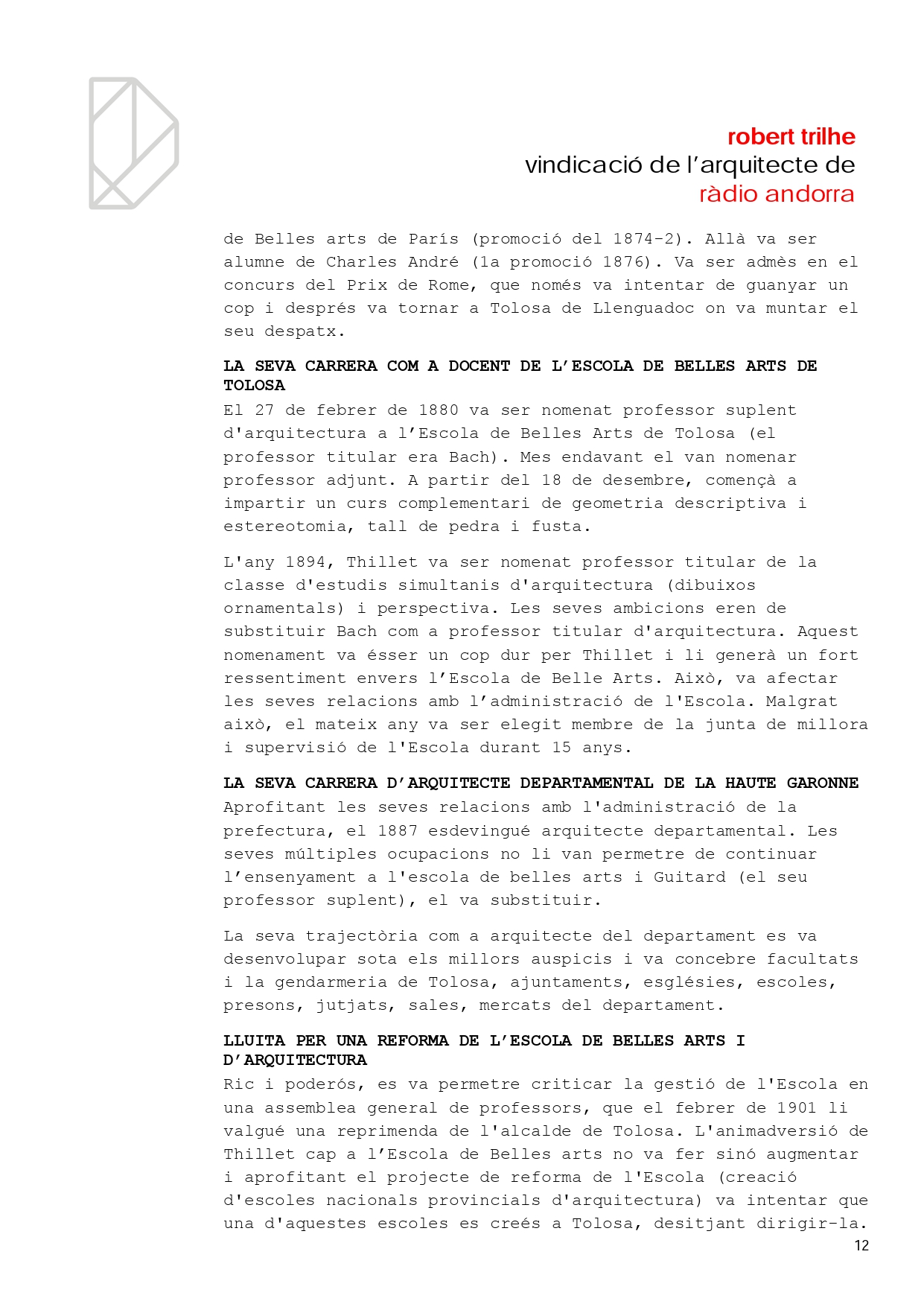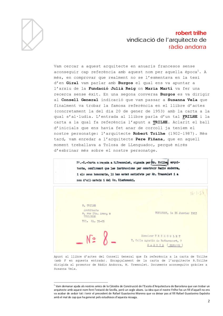 Aquest mes de juny del 2022 hem acabat la nostra llarga relació amb Ràdio Andorra. Tot va començar set anys enrere quan vam guanyar amb els amics Manel Miró, museòleg, i Augusto Saavedra, museògraf, el concurs per la Conservació, rehabilitació i interpretació de Ràdio Andorra. En l’adjudicació de la primera fase dels treballs ja sabíem que no seria museu o, no només museu. Després s’han anat succeint possibles inquilins fins que, finalment, sembla que serà la casa del Ministeri de Turisme i d’Andorra Turisme.
