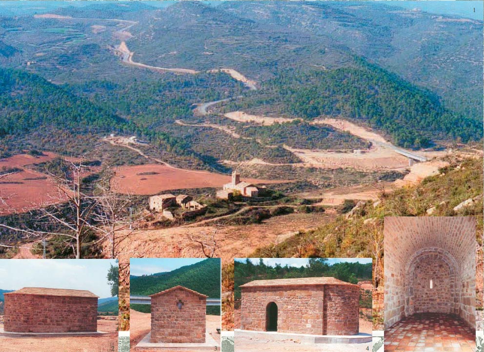 El projecte s’estructura en dues àrees, la referida als aspectes arqueològics i la que correspon als treballs arquitectònics. Les intervencions arquitectòniques s’han centrat en les ermites de Santa Eulàlia de Pomanyons, Sant Martí de la Clua i Sant Girvés. La primera queda per sota del nivell de les aigües i les altres dues en les acaballes. Degut a les dimensions reduïdes dels edificis, els treballs es van portar quasi consecutivament, començant per Santa Eulàlia, seguint per Sant Girvés i finalitzant per Sant Martí. En cada un dels casos va ser difícil simultaniejar vàries intervencions esdevenint per tants processos lineals. L’ordre no és aleatori, va tenir prioritat el trasllat de Santa Eulàlia a la seva nova ubicació abans de la pujada de les aigües. La proximitat de la nova ubicació de Santa Eulàlia i del dolmen dels tres pilars de Sant Girvés, va facilitar que es pogués treballar en aquests tres monuments de manera solapada.En quan als criteris d’intervenció adoptats, ressaltem que no son de major rellevància que la pròpia intervenció dels projecte en la salvaguarda i rescat d’aquest patrimoni en perill de desaparició. Cosa que ha predominat des del principi, i que ha generat el propi projecte alhora de servir d’incentiu al seu desenvolupament. La pròpia condició de patrimoni quasi oblidat i en procés ruïnós va permetre a l’interventor, la llibertat d’acció, perill aquest evitat per l’equip encarregat i que va intentar portar a terme una intervenció mínima, suficient a la consolidació dels edificis i a la seva recuperació volumètrica sense major pretensió, afegint únicament quan fos necessari i utilitzant materials locals o de runa en total neutralitat. ►STA.EULÀLIA DE POMANYONS