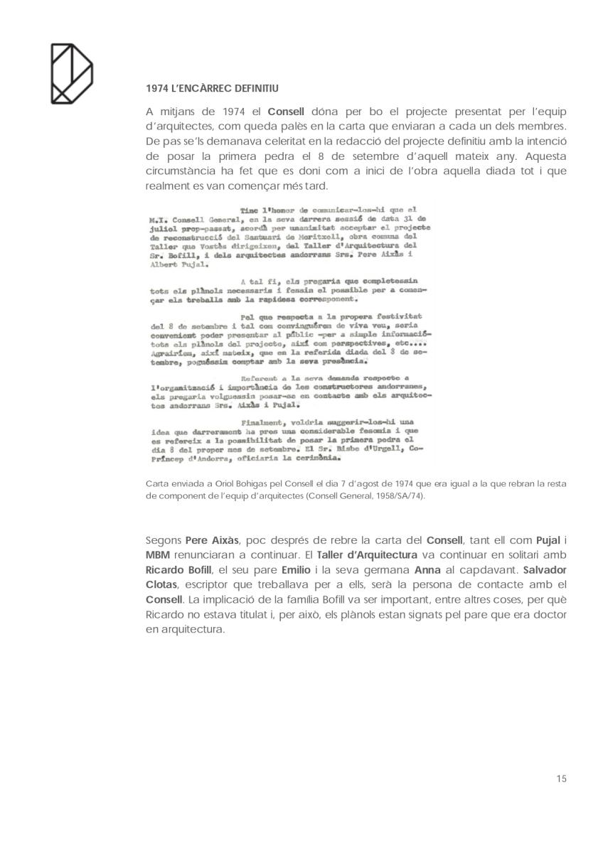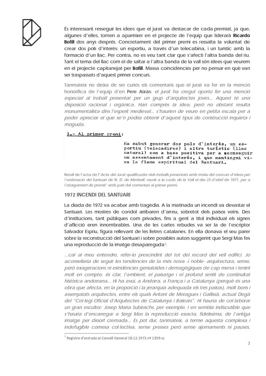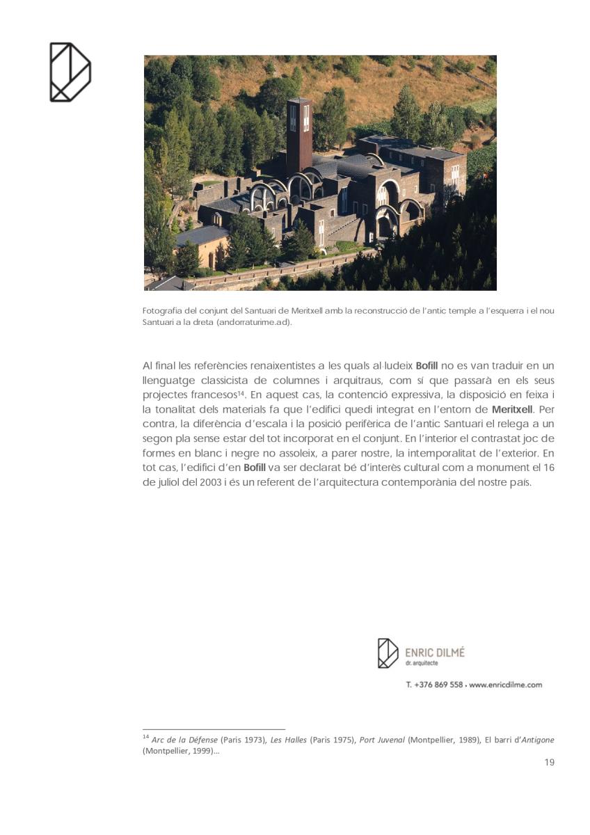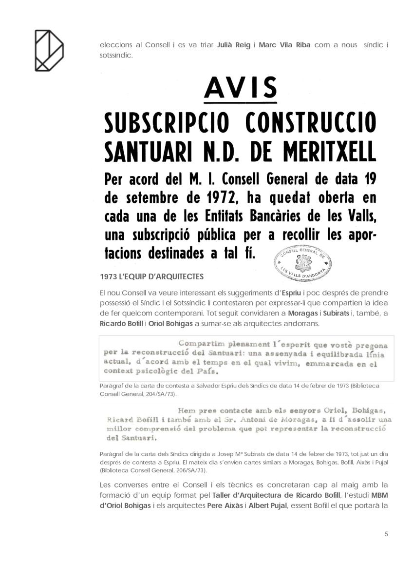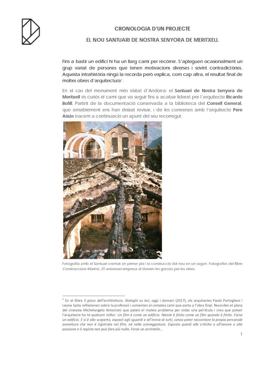 En el cas del monument més visitat d’Andorra: el Santuari de Nostra Senyora de Meritxell és curiós el camí que va seguir fins a acabar liderat per l’arquitecte Ricardo Bofill. Partint de la documentació conservada a la biblioteca del Consell General, que amablement ens han deixat revisar, i de les converses amb l’arquitecte Pere Aixàs tracem a continuació un apunt del seu recorregut.