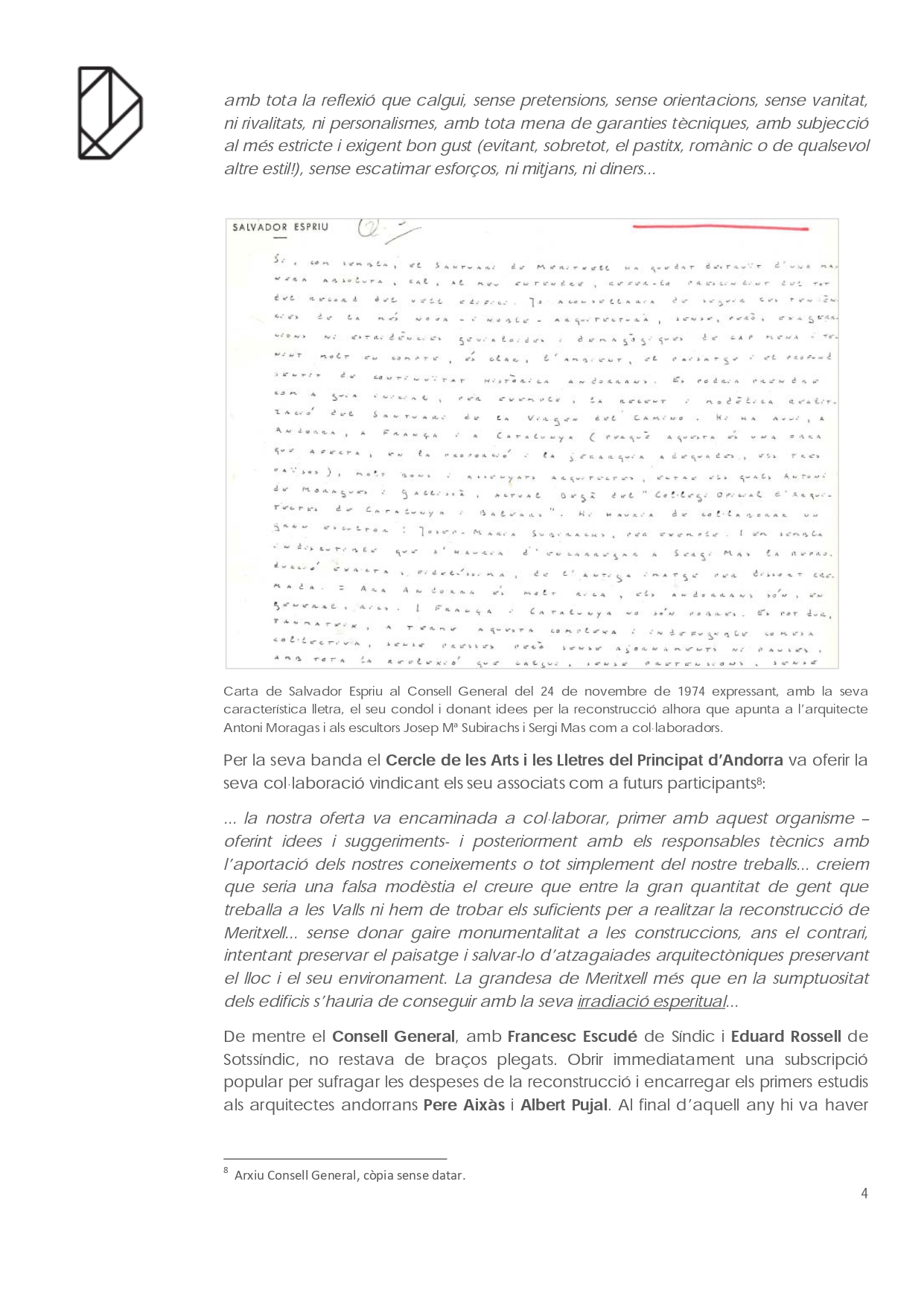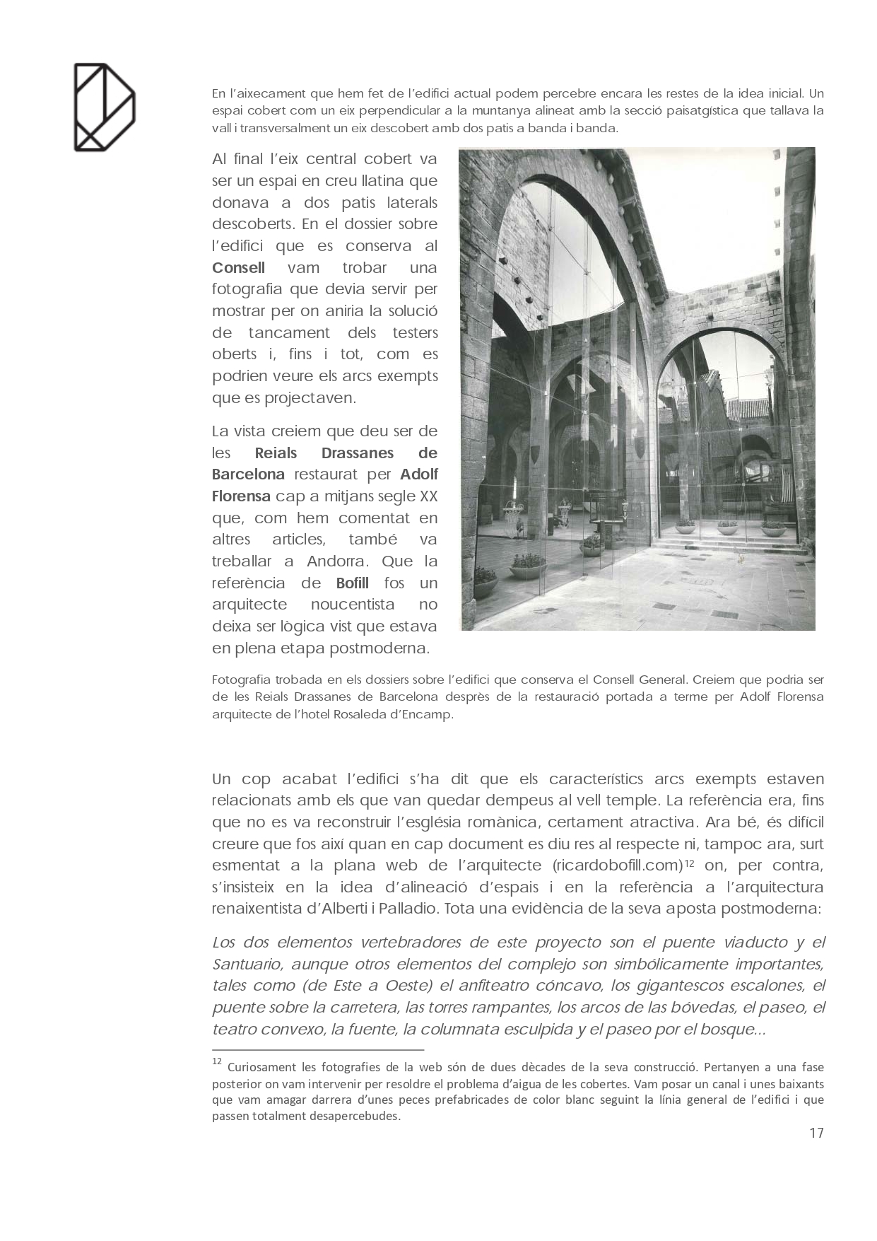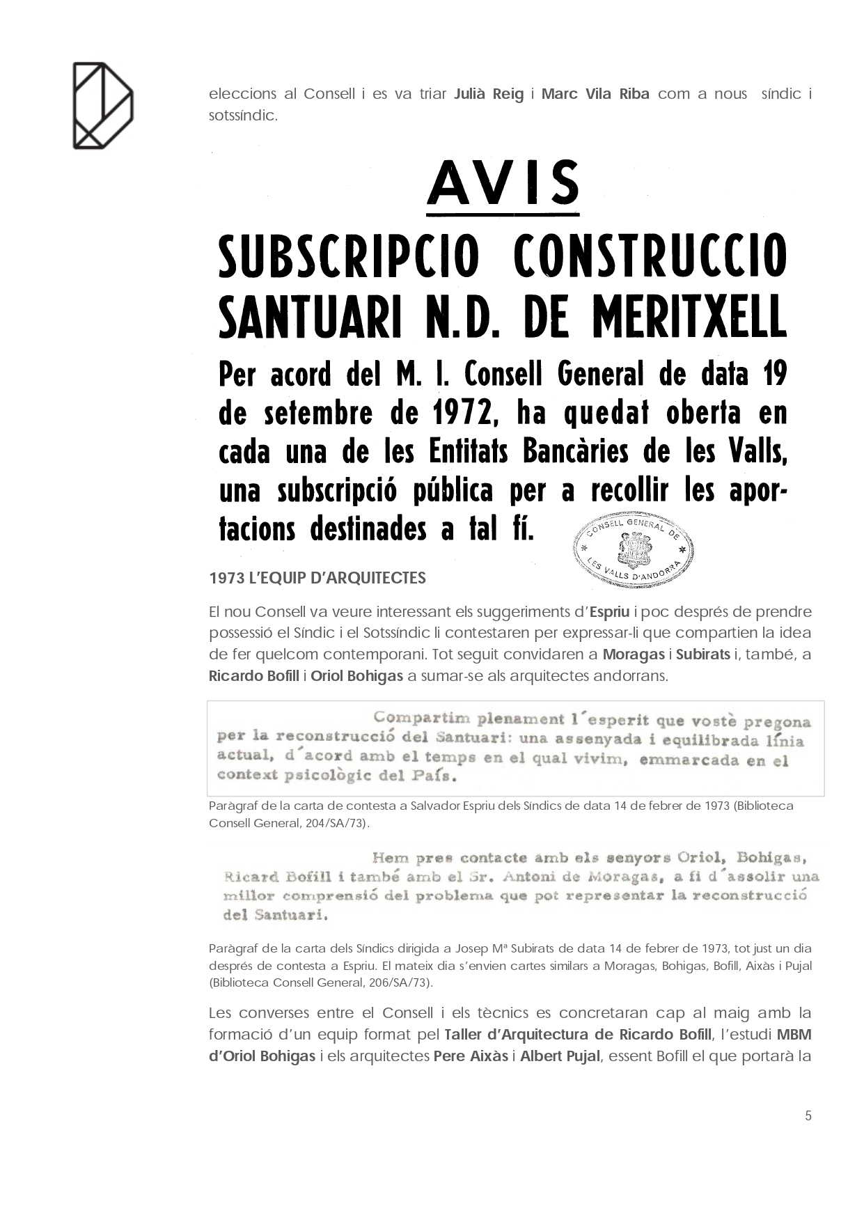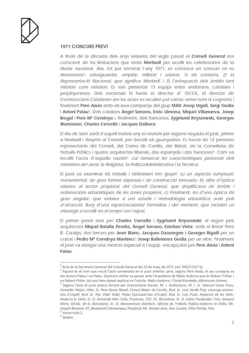 En el cas del monument més visitat d’Andorra: el Santuari de Nostra Senyora de Meritxell és curiós el camí que va seguir fins a acabar liderat per l’arquitecte Ricardo Bofill. Partint de la documentació conservada a la biblioteca del Consell General, que amablement ens han deixat revisar, i de les converses amb l’arquitecte Pere Aixàs tracem a continuació un apunt del seu recorregut.
