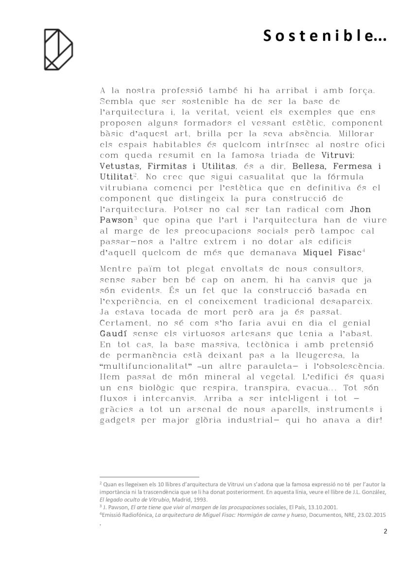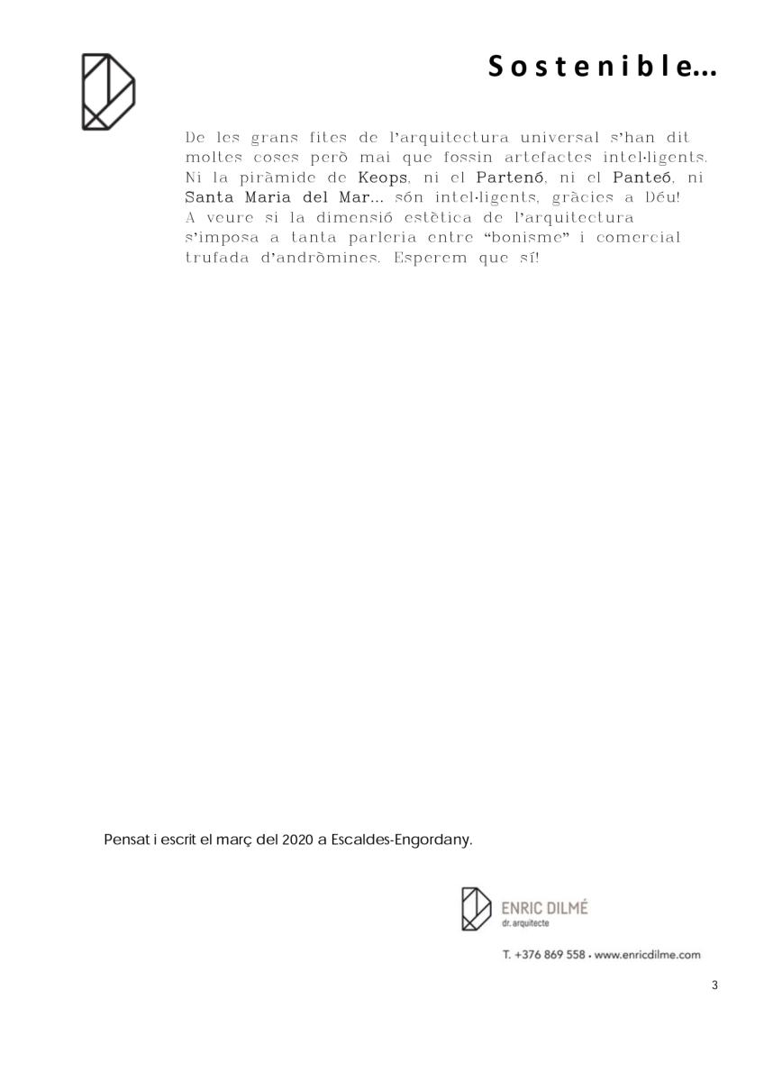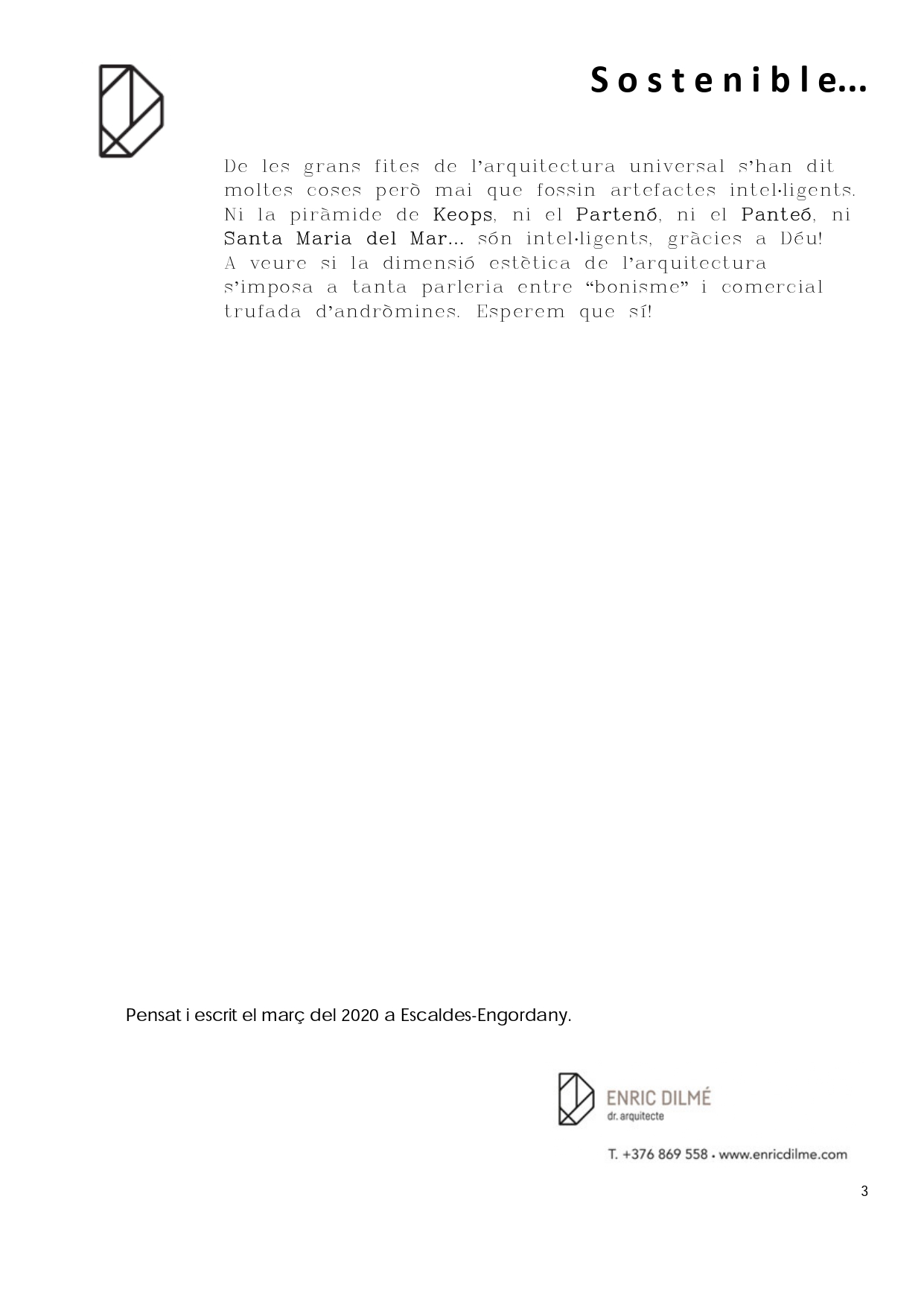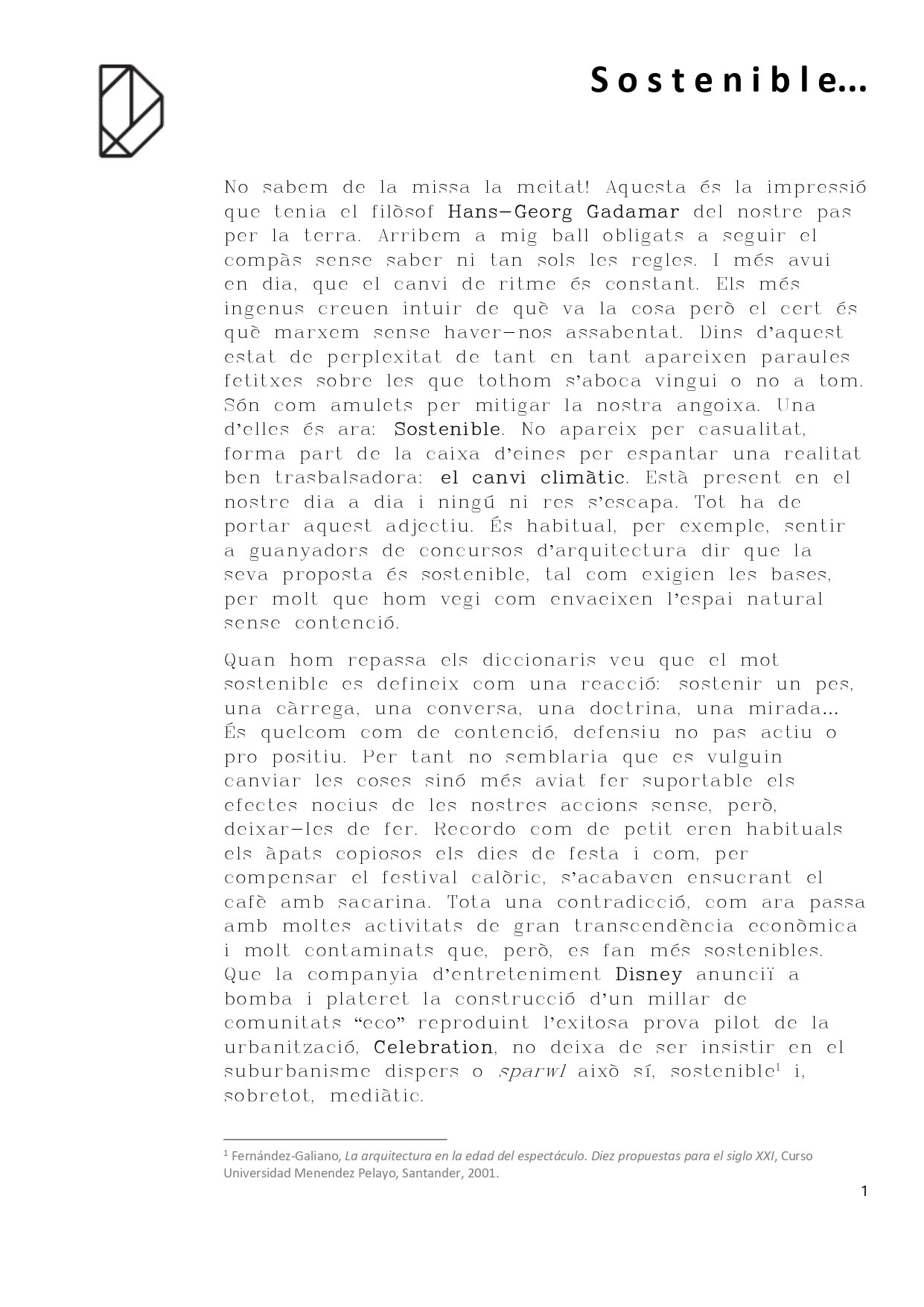 No sabem de la missa la meitat! Aquesta és la impressió que tenia el filòsof Hans-Georg Gadamar del nostre pas per la terra. Arribem a mig ball obligats a seguir el compàs sense saber ni tan sols les regles. I més avui en dia, que el canvi de ritme és constant. Els més ingenus creuen intuir de què va la cosa però el cert és què marxem sense haver-nos assabentat. Dins d’aquest estat de perplexitat de tant en tant apareixen paraules fetitxes sobre les que tothom s’aboca vingui o no a tom. Són com amulets per mitigar la nostra angoixa. Una d’elles és ara: Sostenible.