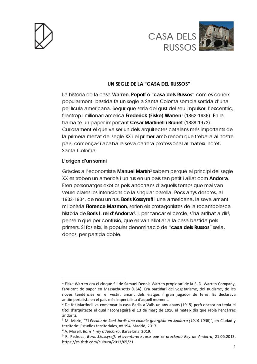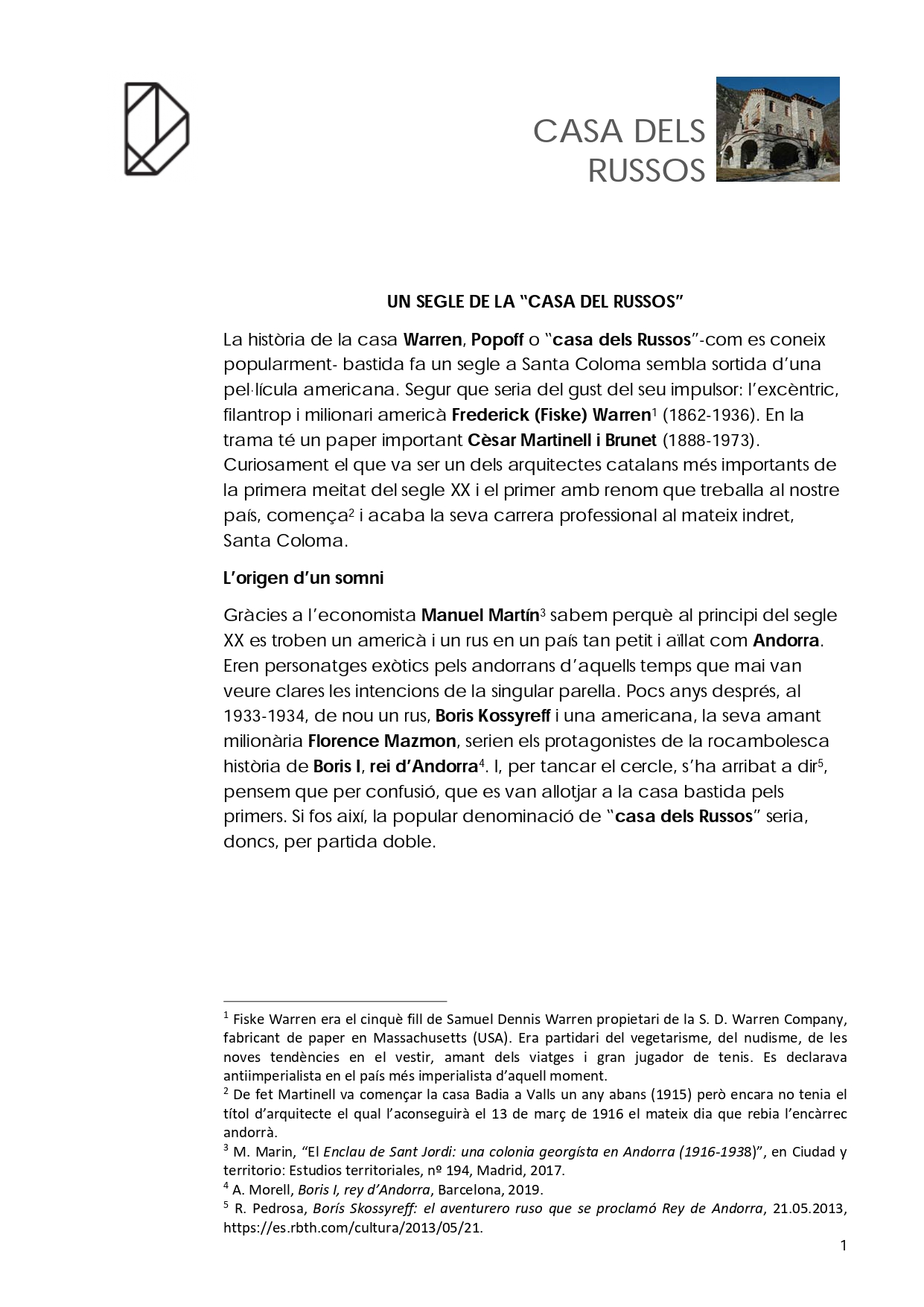 La història de la casa Warren, Popoff o “casa dels Russos”-com es coneix popularment- bastida fa un segle a Santa Coloma sembla sortida d’una pel·lícula americana.